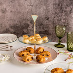 Introducing La Mesa pink porcelain cake stand, a captivating addition to your dessert presentation. This elegant 2 tier serving stand is crafted from high quality porcelain and glass, showcasing a timeless pink hue is a must have. The cake stand comes in a generous size, which provides space for displaying cakes, pastries, cupcakes, and more.