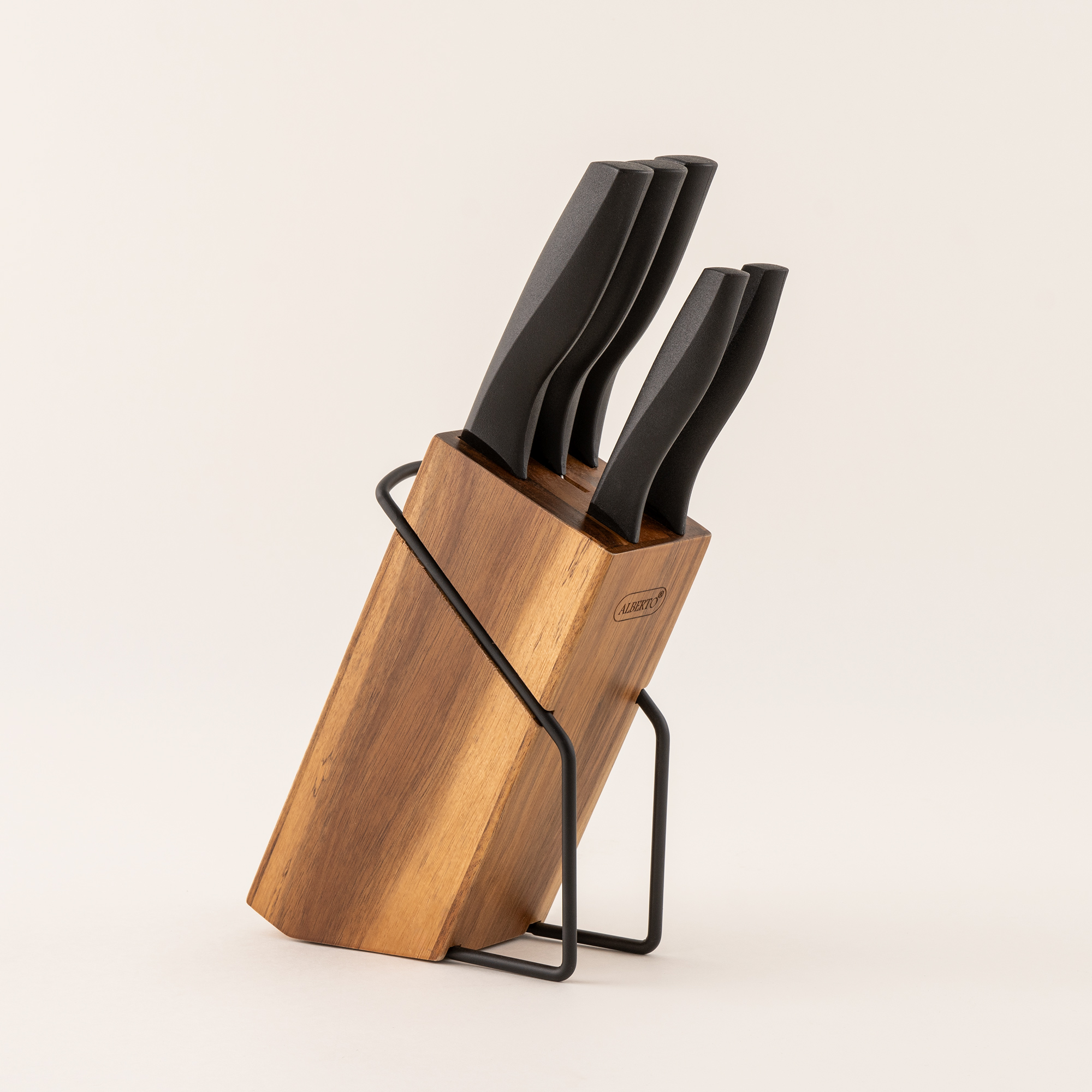 "طقم سكاكين البرتو 5 قطع بمقابض مع حامل خشب أكاسيا