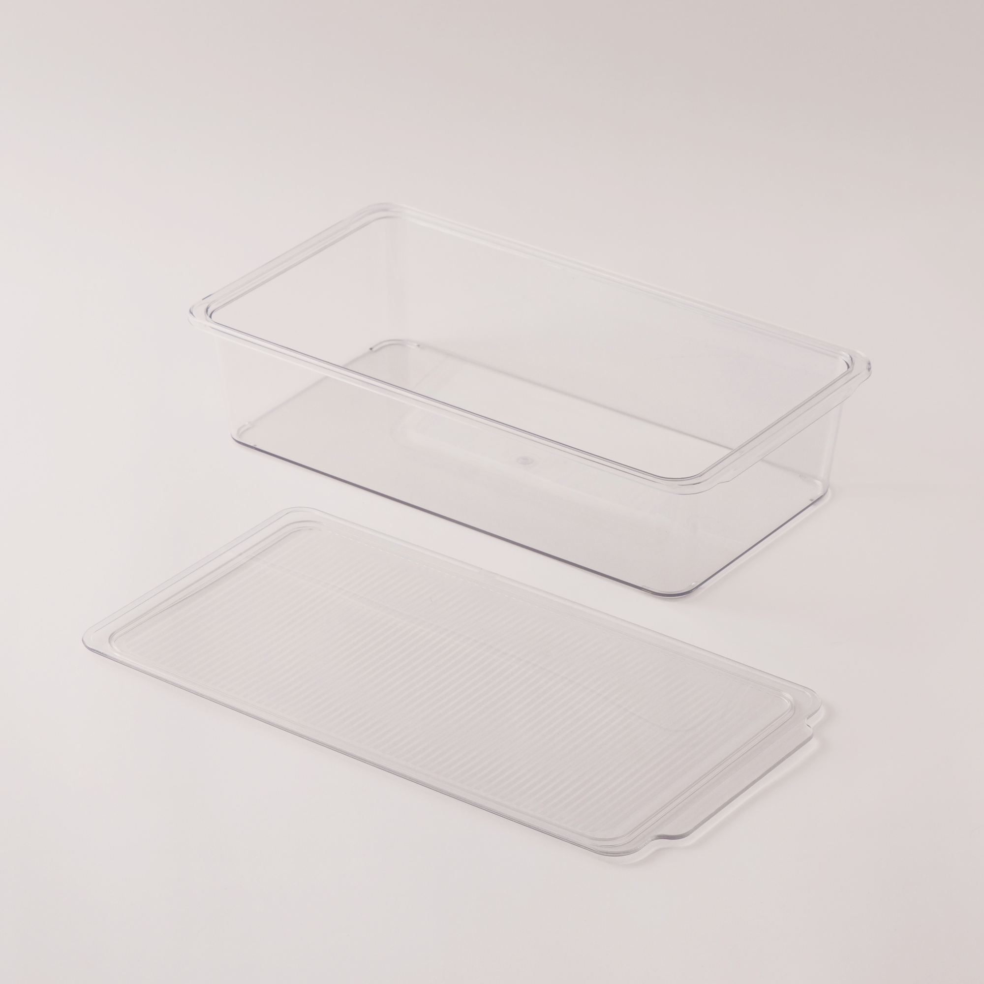"البرتو تقدم لك منظم ثلاجة نحيف مع غطاء مصنوع من خامة PET عالية الجودة باللون شفاف يسهل رؤية المحتويات. تصميمه الرفيع يساعدك على استغلال المساحات الصغيرة داخل الثلاجة وترتيب المنتجات بشكل عملي ومنظم. مناسب لتخزين العبوات، الأكياس، أو المكونات اليومية. الأبعاد: 33.2*17.6*7.8سم.