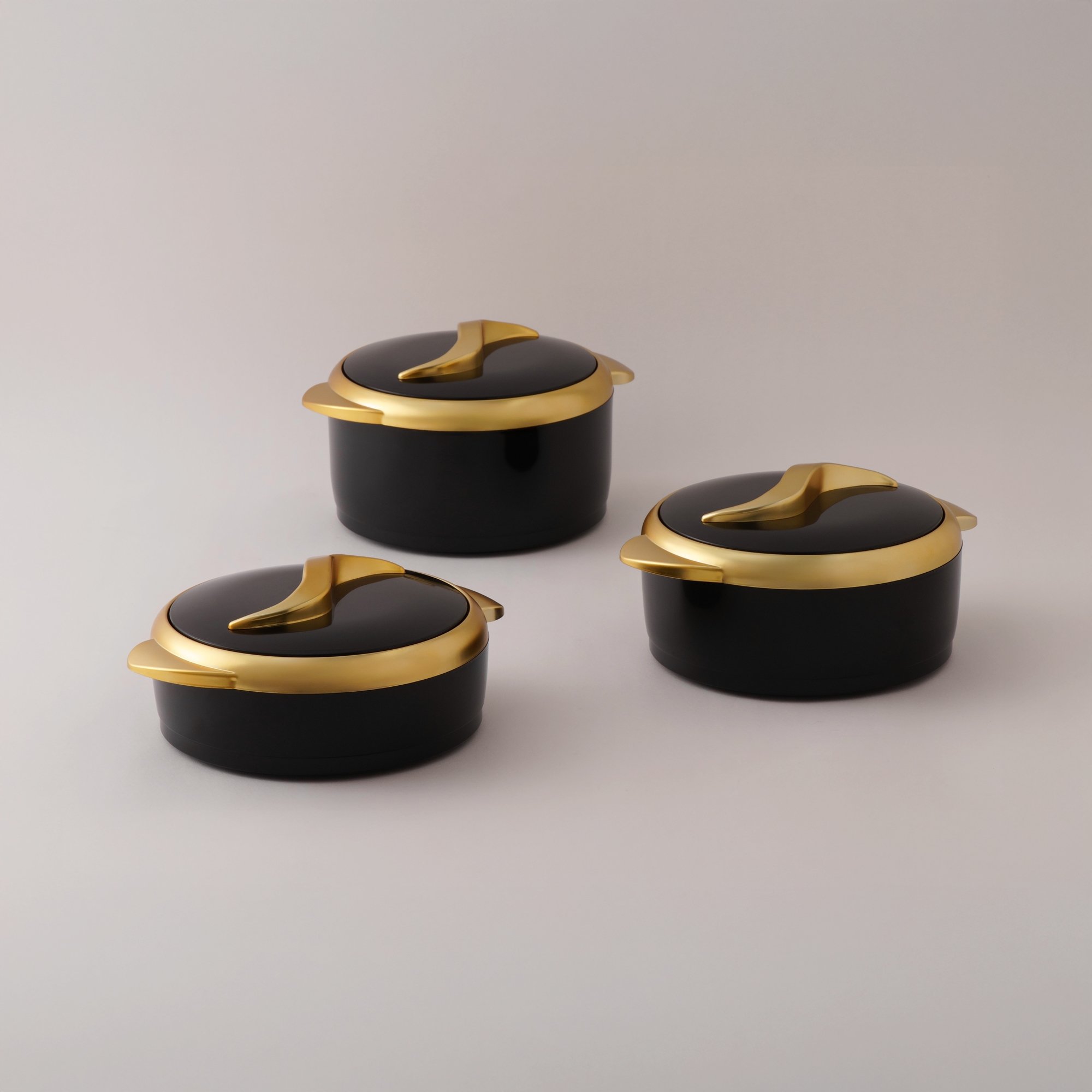 البرتو طقمًا عمليًا من ثلاث قدور حفظ حرارة مصنوع من خامات بلاستيك والفولاذ المقاوم للصدأ. السعة 1.5 لتر و2.0 لتر و2.5 لتر، مناسبة لتقديم الطعام وحفظ حرارته. يأتي التصميم باللونين الأسود والفضي، مما يجعله مناسبًا للاستخدام اليومي والعزومات العائلية.