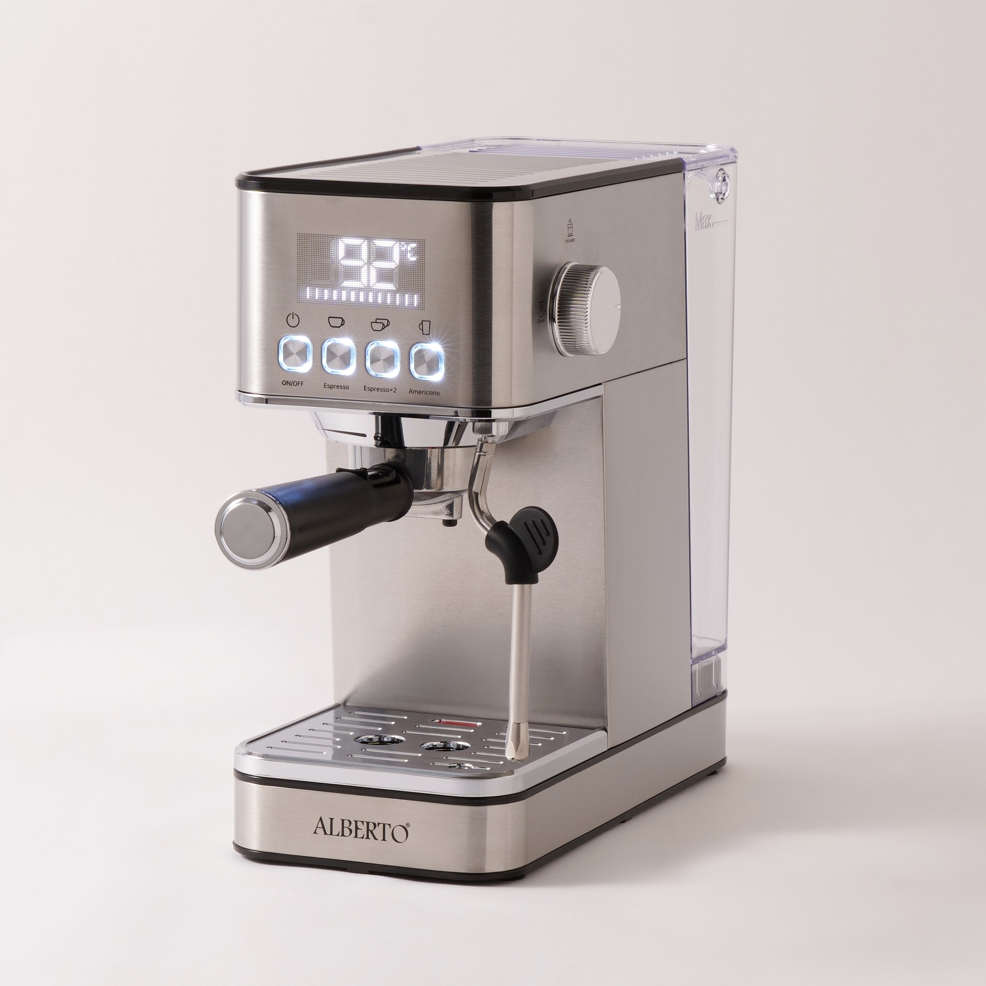 ماكينة الإسبريسو من أوبال تمنحك تجربة قهوة احترافية في المنزل، بهيكل أنيق من الستانلس ستيل وخزان ماء بسعة 1.7 لتر وضغط 20 بار. تعمل بمحرك قوي 150 واط وتأتي بشاشة LED لعرض الوقت ودرجة الحرارة. تشمل الماكينة فلتر مزدوج، بورتافلتر معدني وملعقة قياس. مصممة لعشاق الإسبريسو الذين يبحثون عن أداء متكامل في جهاز مدمج وعملي.