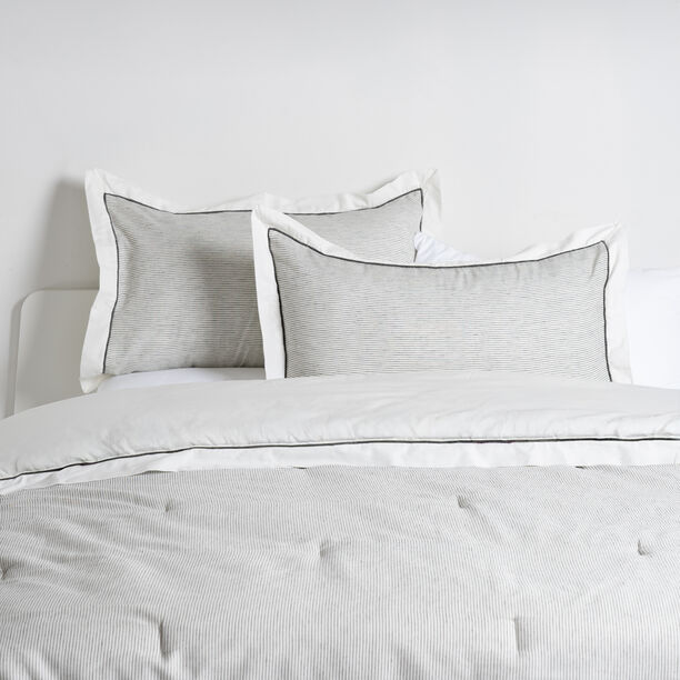 طقم لحاف كنج 3 قطع من بوتيك بلانش يجمع بين الأناقة والراحة. مصنوع من قطن سلوب 100% مع تطريز مخطط على الأطراف، مما يوفر ملمسًا ناعمًا وقابلًا للتنفس. يضم الطقم 1 لحاف (220*240 سم)، 2 وسادة (50*75 سم)، مما يجعله إضافة مثالية لغرفة نوم أنيقة ومريحة.