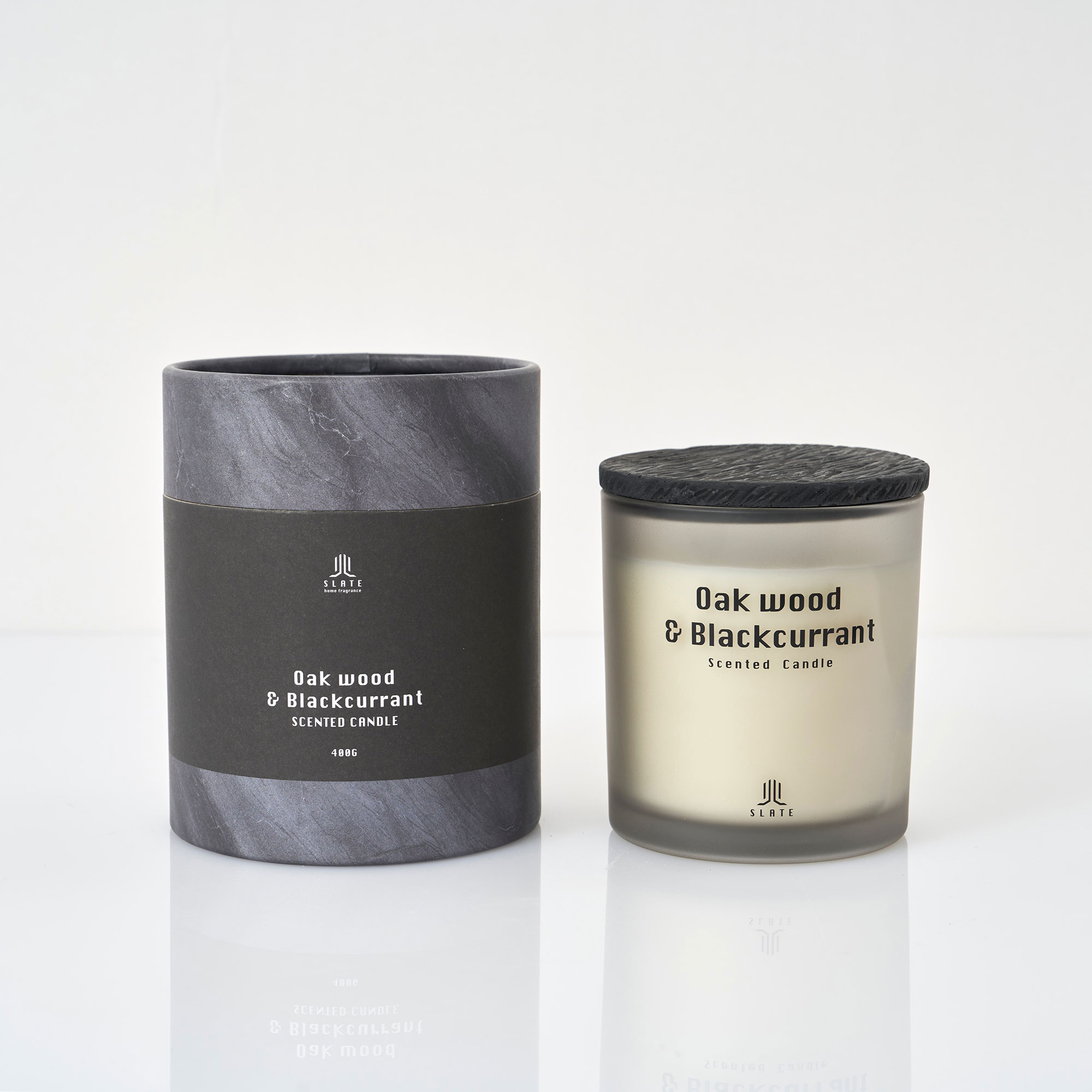 شمعة عطرية بوعاء زجاجي 400 جم برائحة البلوط، أسود