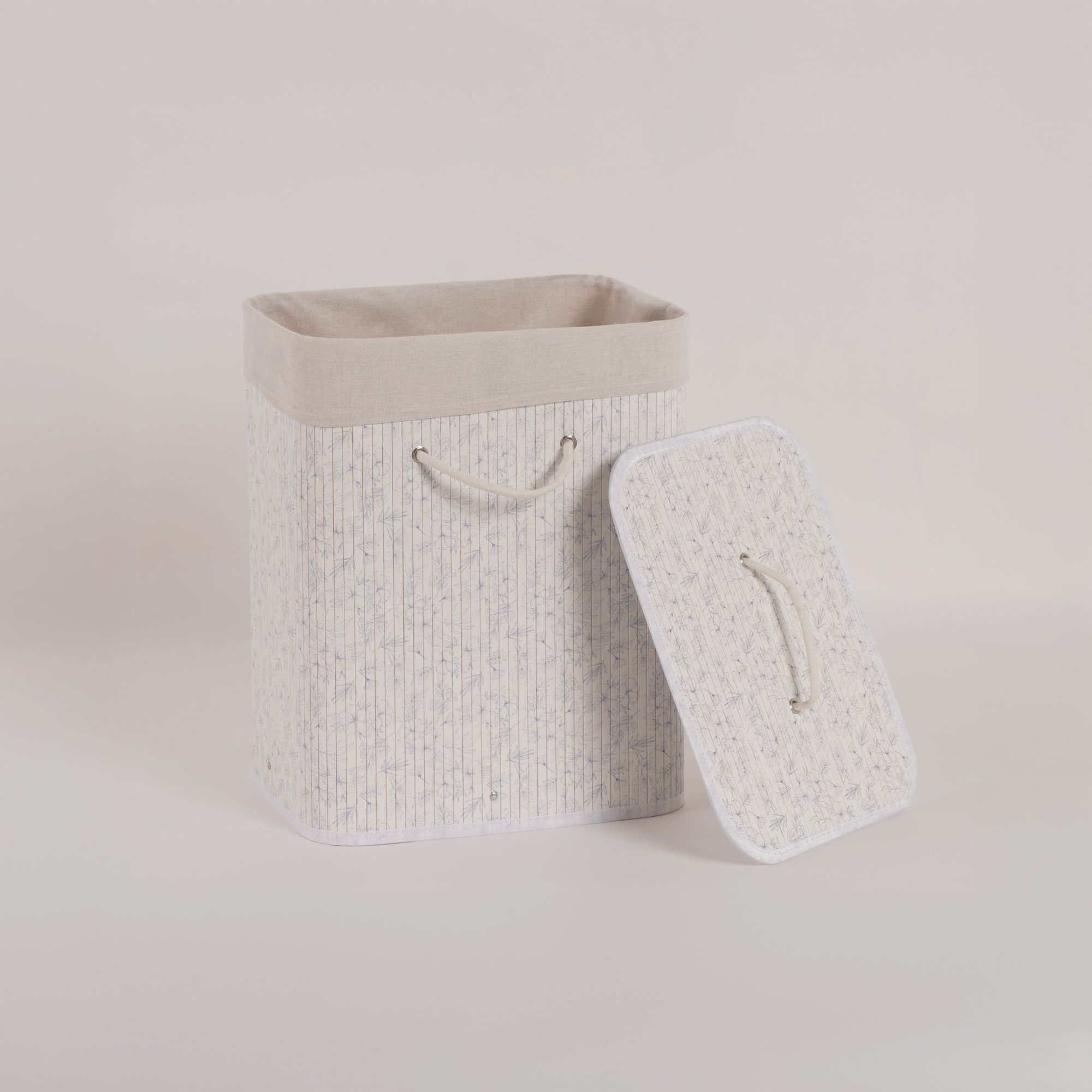 كوتاج سلة غسيل من الخيزران بتصميم وطبعة بيضاء 40*30*50 سم