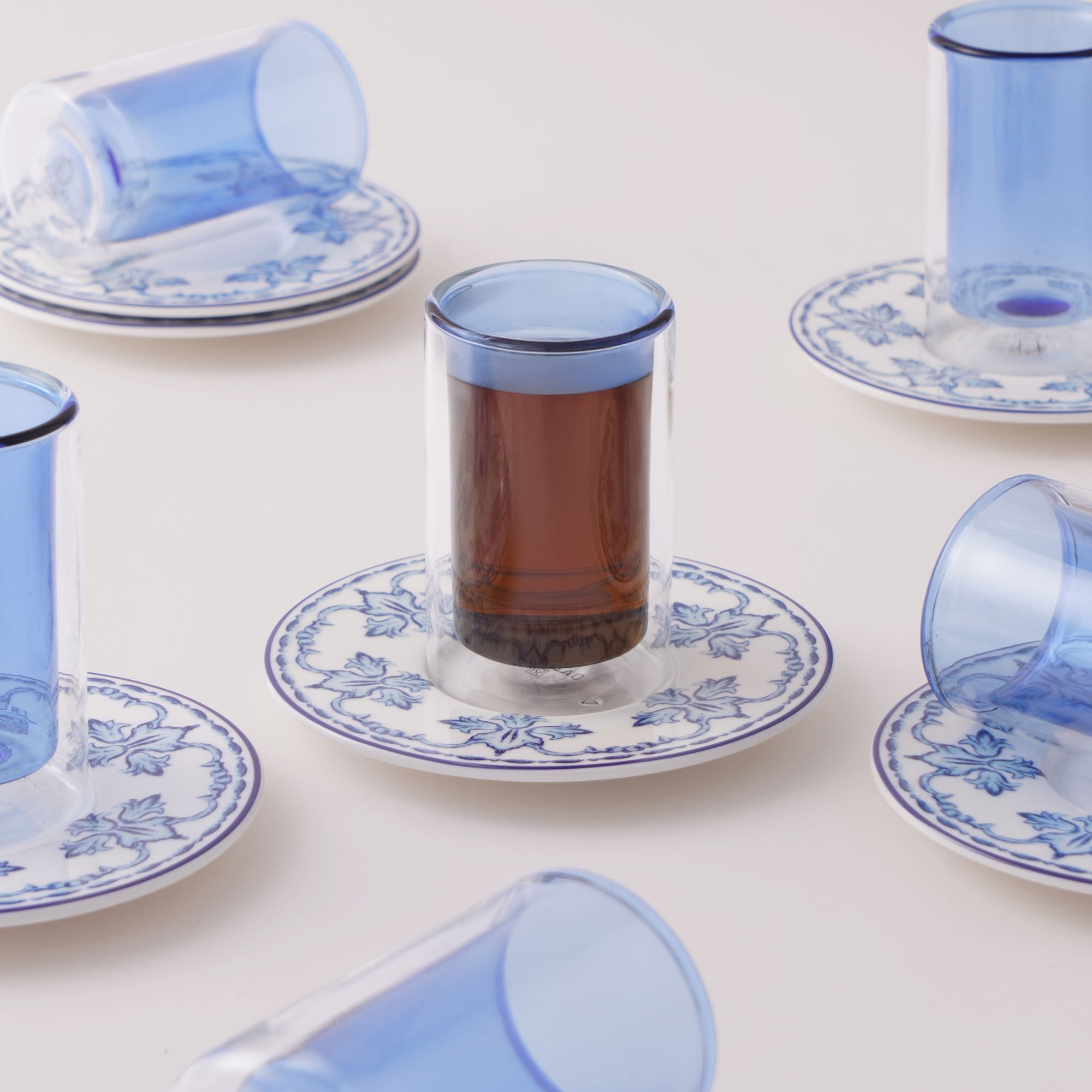 دلتي طقم أكواب شاي زجاج 12 قطعة، أزرق