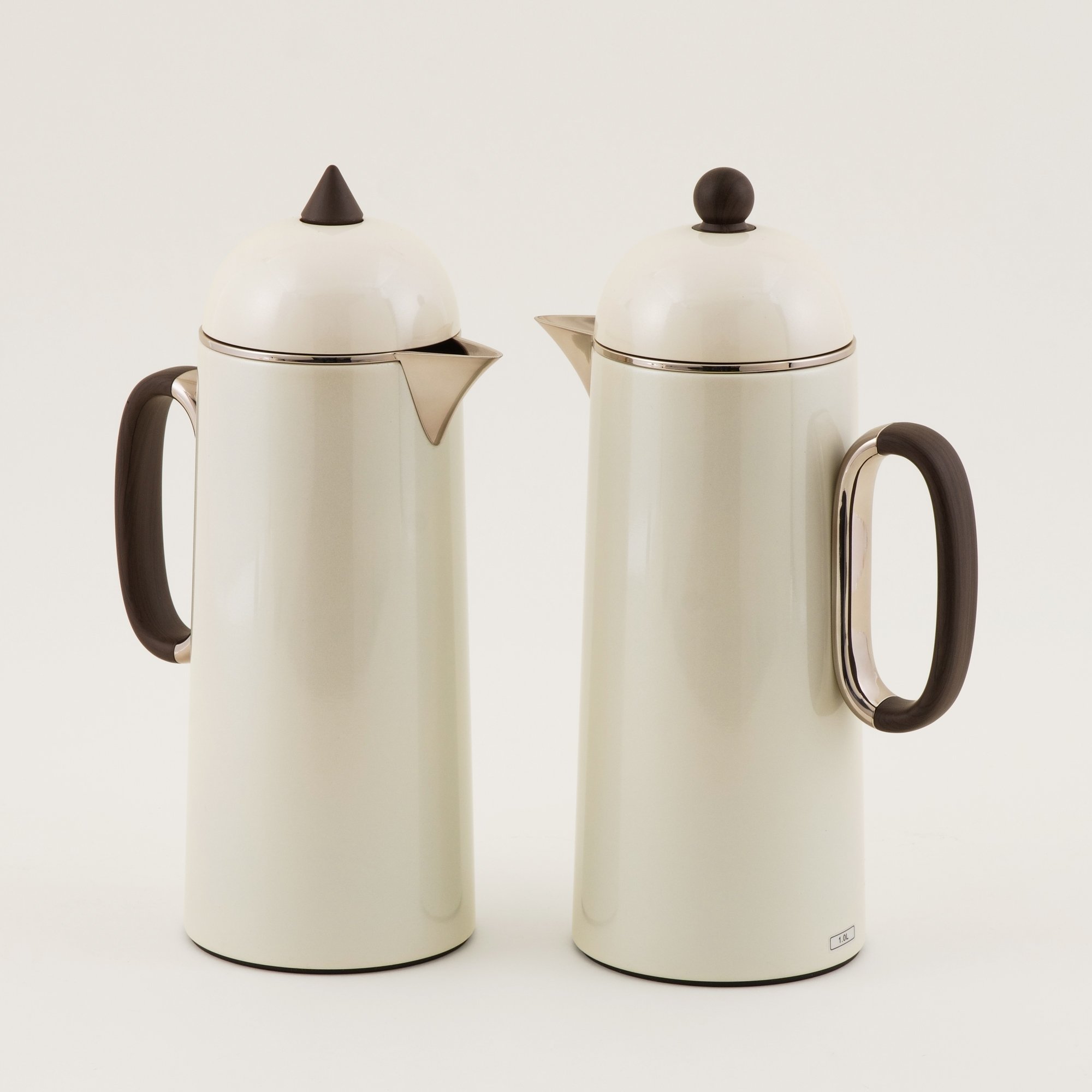 دلتي طقم دلة قطعتين ستانلس ستيل لون لؤلؤي مع بني فاتح وخشب بسعة 1 لتر لكل قطعة