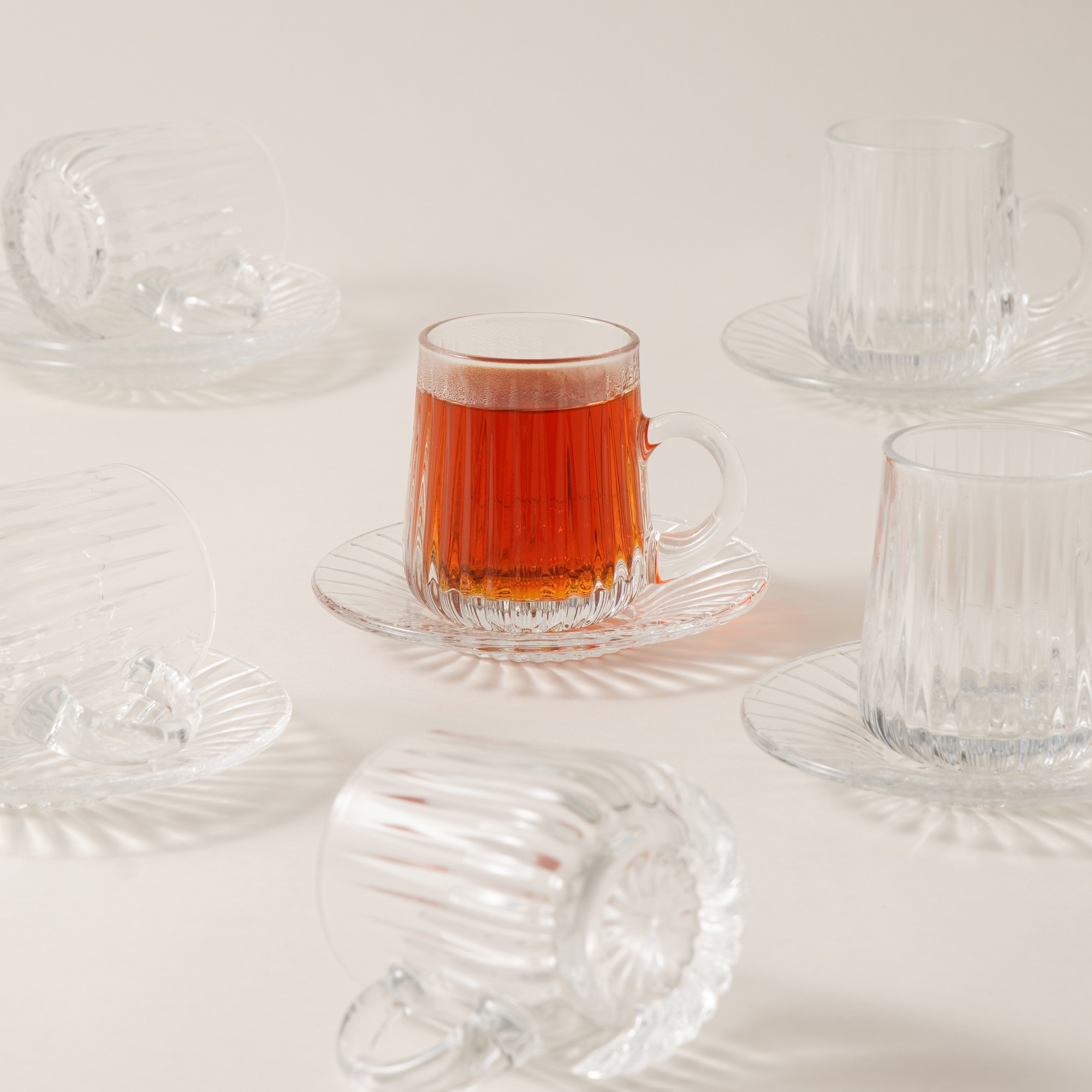 الطقم يتضمن 6 أكواب شاي، 6 أطباق