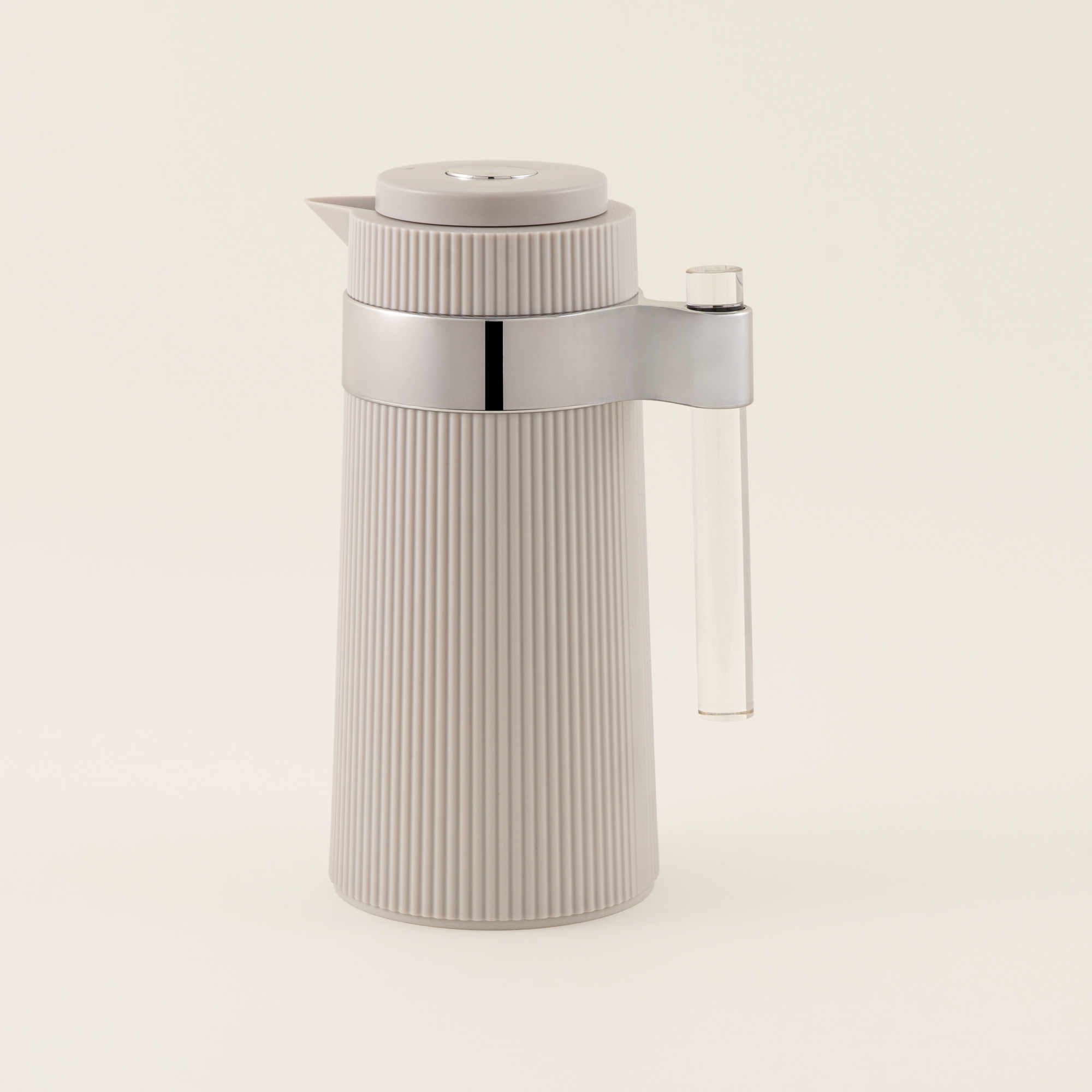 "دلتي دلة بلاستيك باللون بيج مطفي مع لمسة أكريليك أنيقة وسعة 1 لتر، تصميم عملي يجمع بين الخفة والمتانة والمظهر العصري. مصنوعة من خامة أكريليك عالية الجودة تحافظ على حرارة المشروبات وتناسب الاستخدام اليومي والضيافة.