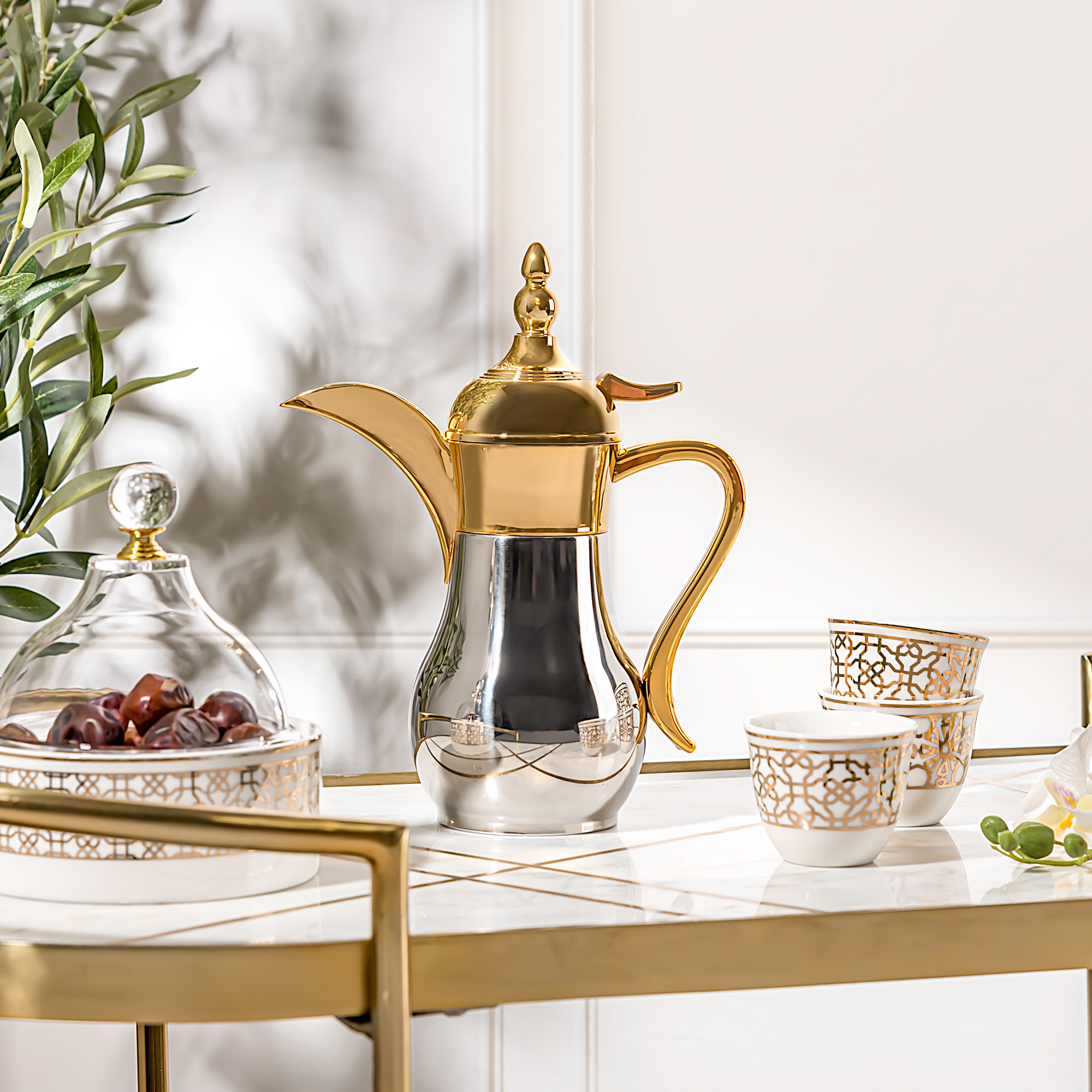 دلة ستيل صغيرة حافظة للحرارة ذهبي وفضي 300 مل