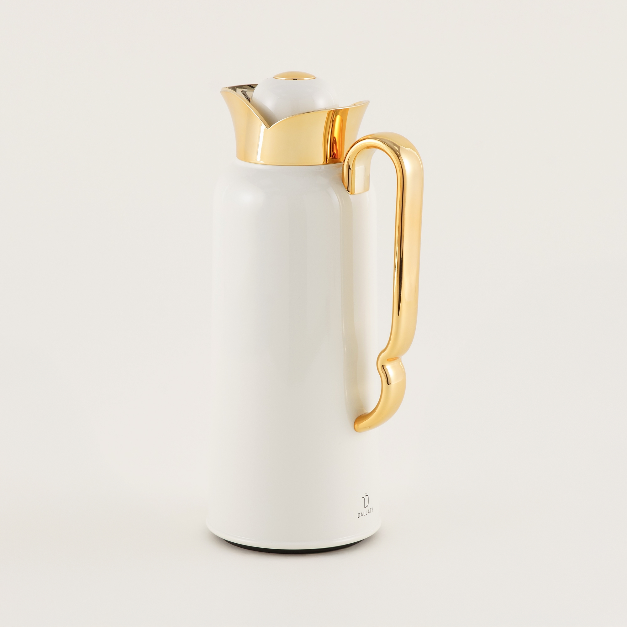 دلتي دلة ستانلس ستيل، أبيض مع ذهبي 1 لتر