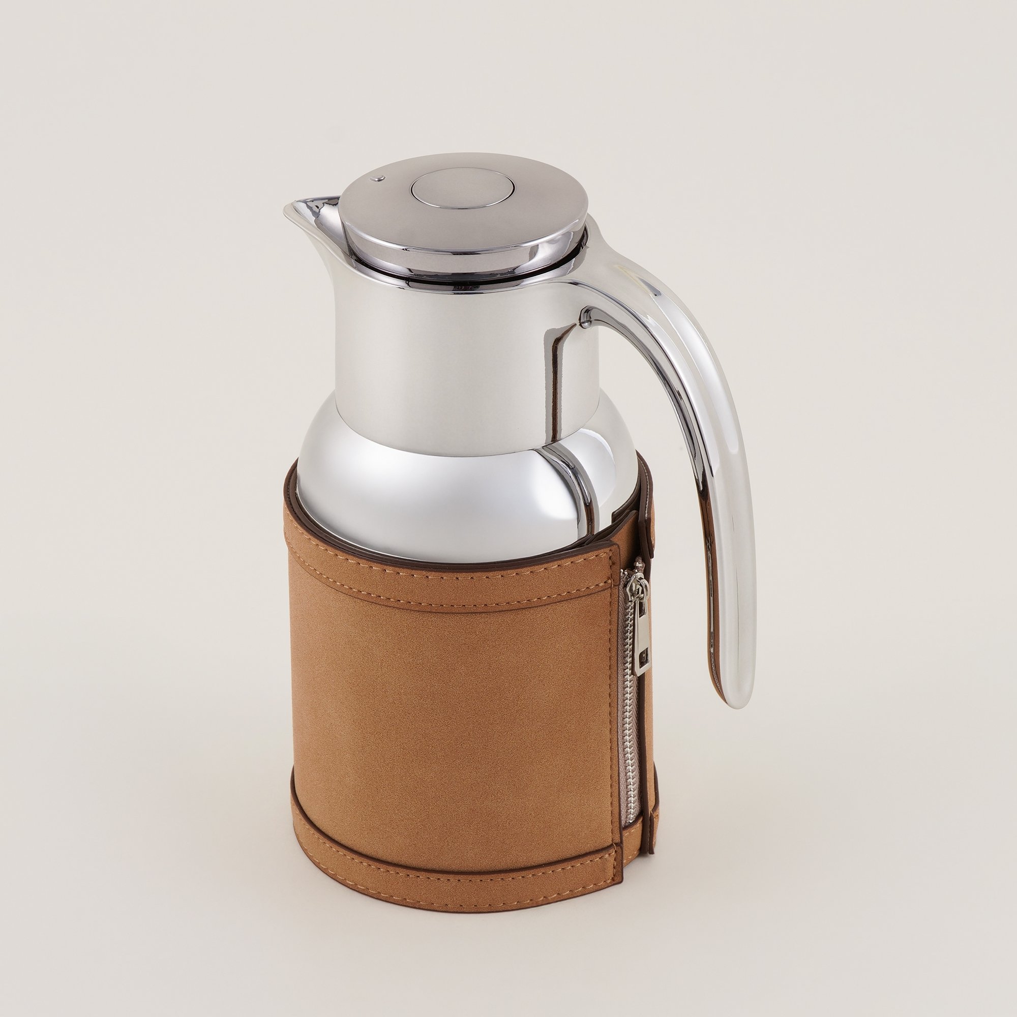 دلتي دلة ستانلس ستيل بلمسة جلد، بني 1 لتر