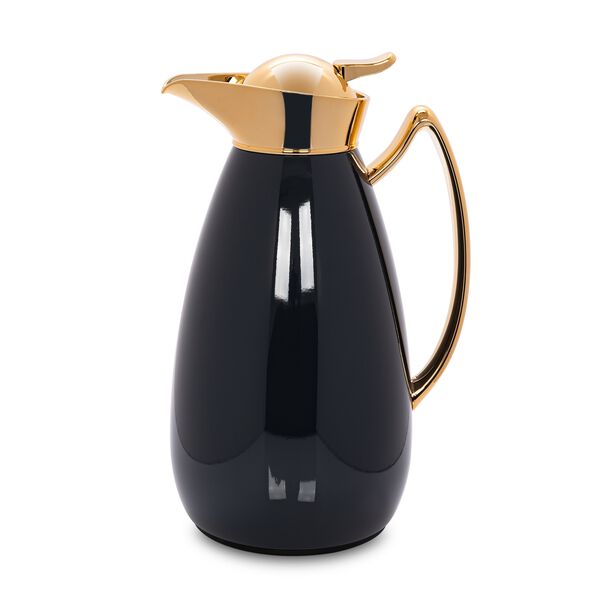 طابقي أناقة منزلك مع فخامة تشكيلة التقديم الخاصة بكِ بفضل دلة القهوة العربية بسعّة 1ل من دلّتي. مصنوعة من الستيل عالي الجودة بلون أسود وذهبي فاخر بالإضافة إلى غطاء محكم وزر ضغّاط للحفاظ على حرارة القهوة لأطول فترة.