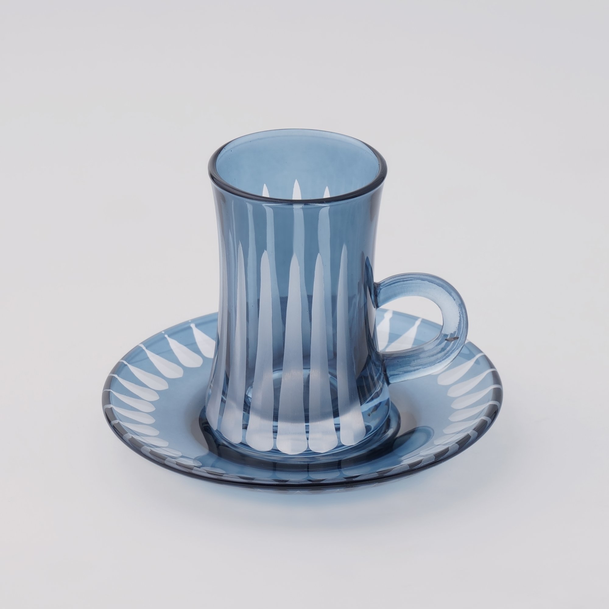 الطقم يتضمن 6 أكواب شاي، 6 أطباق