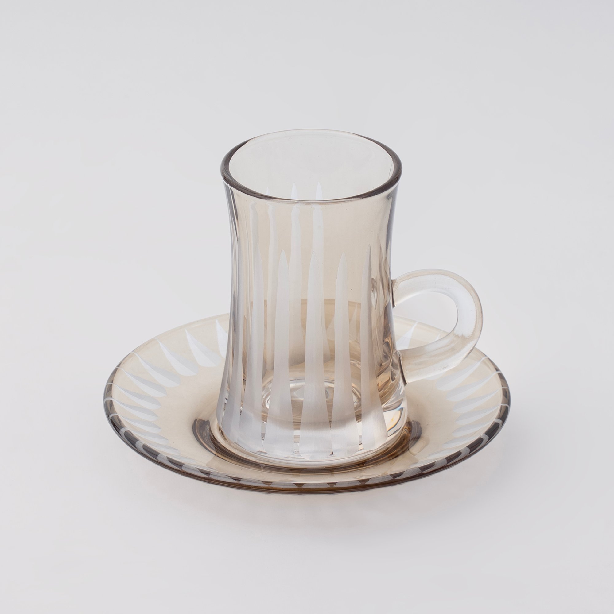 الطقم يتضمن 6 أكواب شاي، 6 أطباق