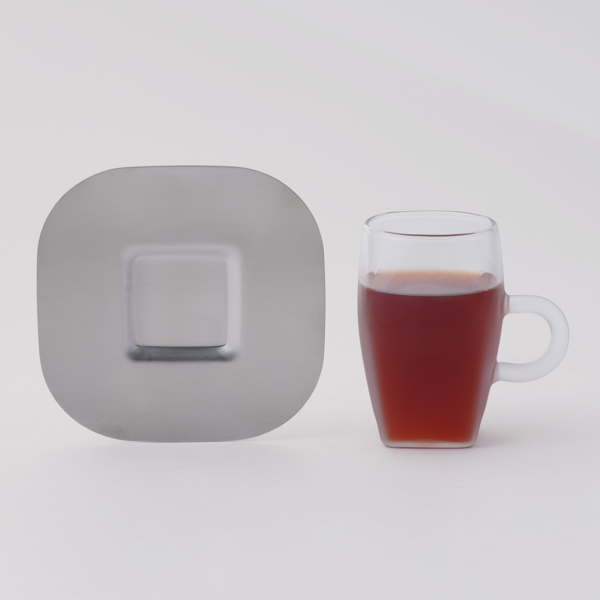 الطقم يتضمن 6 أكواب شاي، 6 أطباق