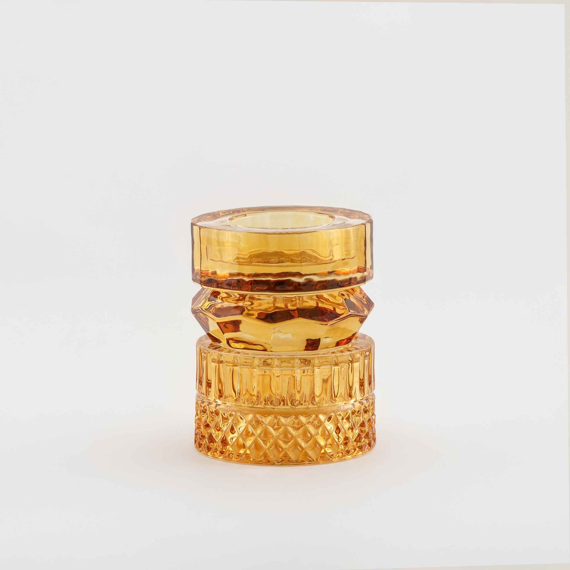 حامل شموع زجاجي فاخر بتصميم ماسي أنيق يعكس الضوء بأسلوب جذّاب، يأتي بلون كهرماني داكن يضفي دفئًا ورقيًا على المساحات الداخلية. مثالي لتزيين الطاولات والزوايا في مختلف المناسبات، ويجمع بين المتانة والجمال بفضل خامته الزجاجية عالية الجودة.