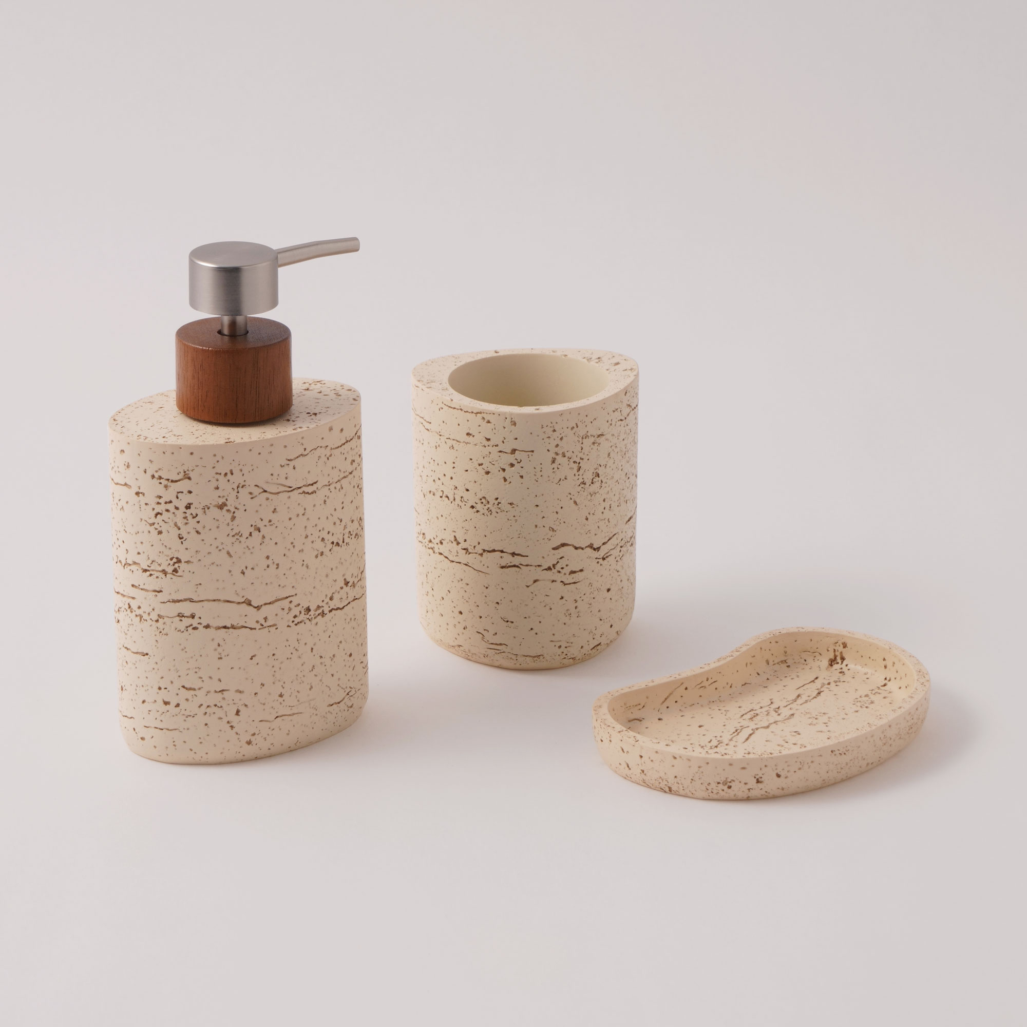 هومز طقم اكسسوارات حمام 3 قطع بولي ريزن خشن، بيج