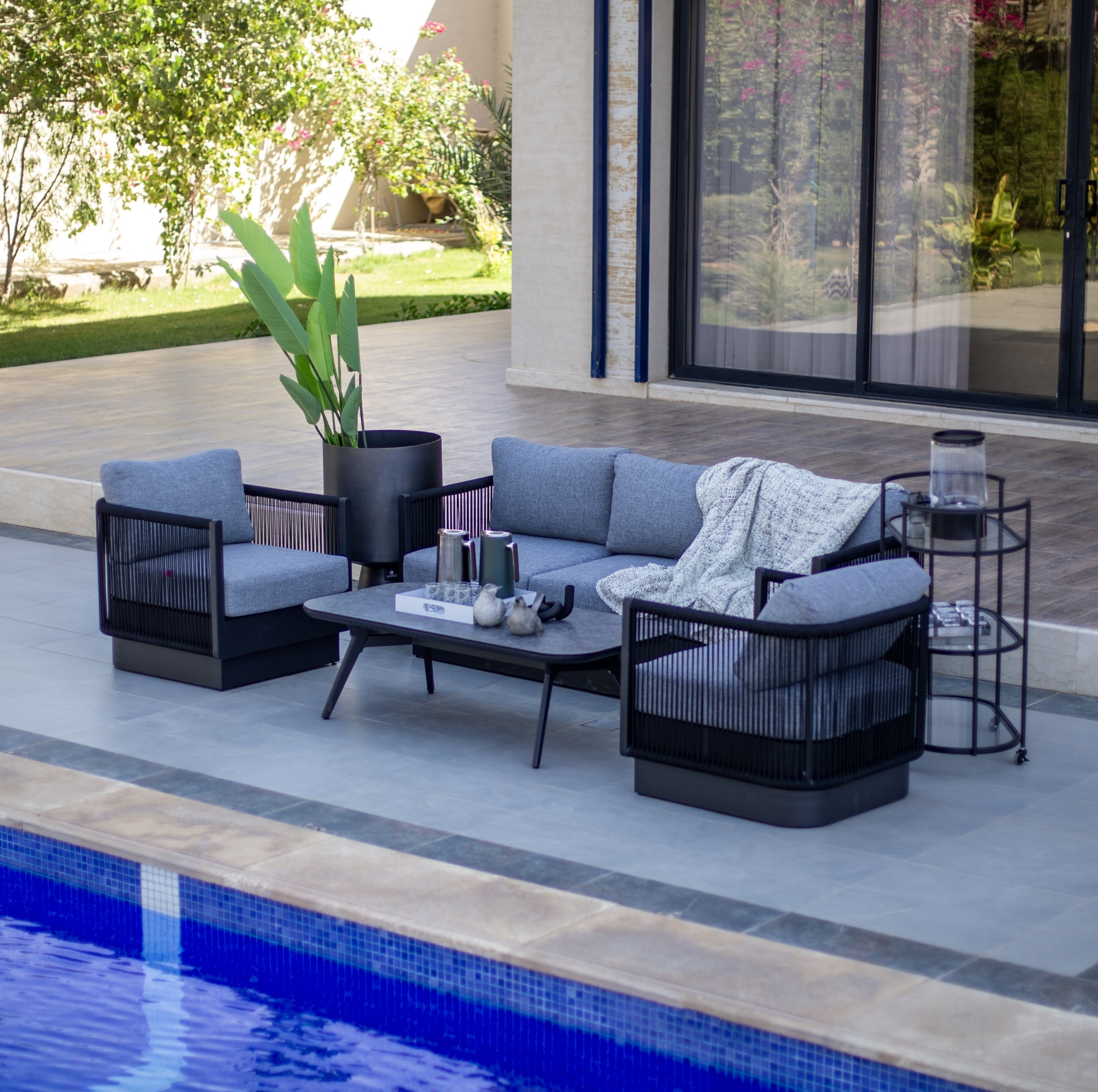 هومز طقم جلسة خارجية ألومنيوم 4 قطع، أسود