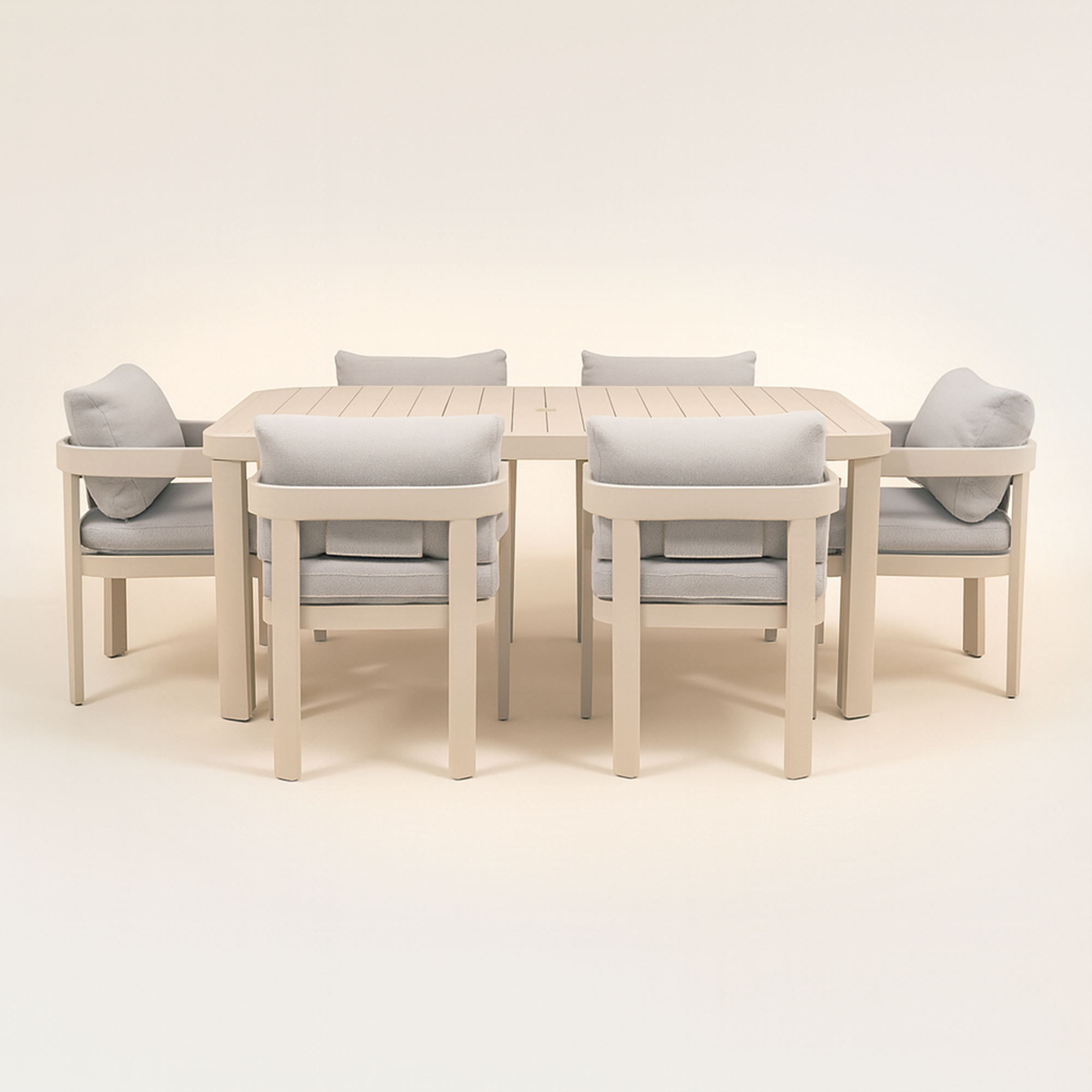 هومز طاولة طعام خارجية ألومنيوم مع وسادة قماش، بيج