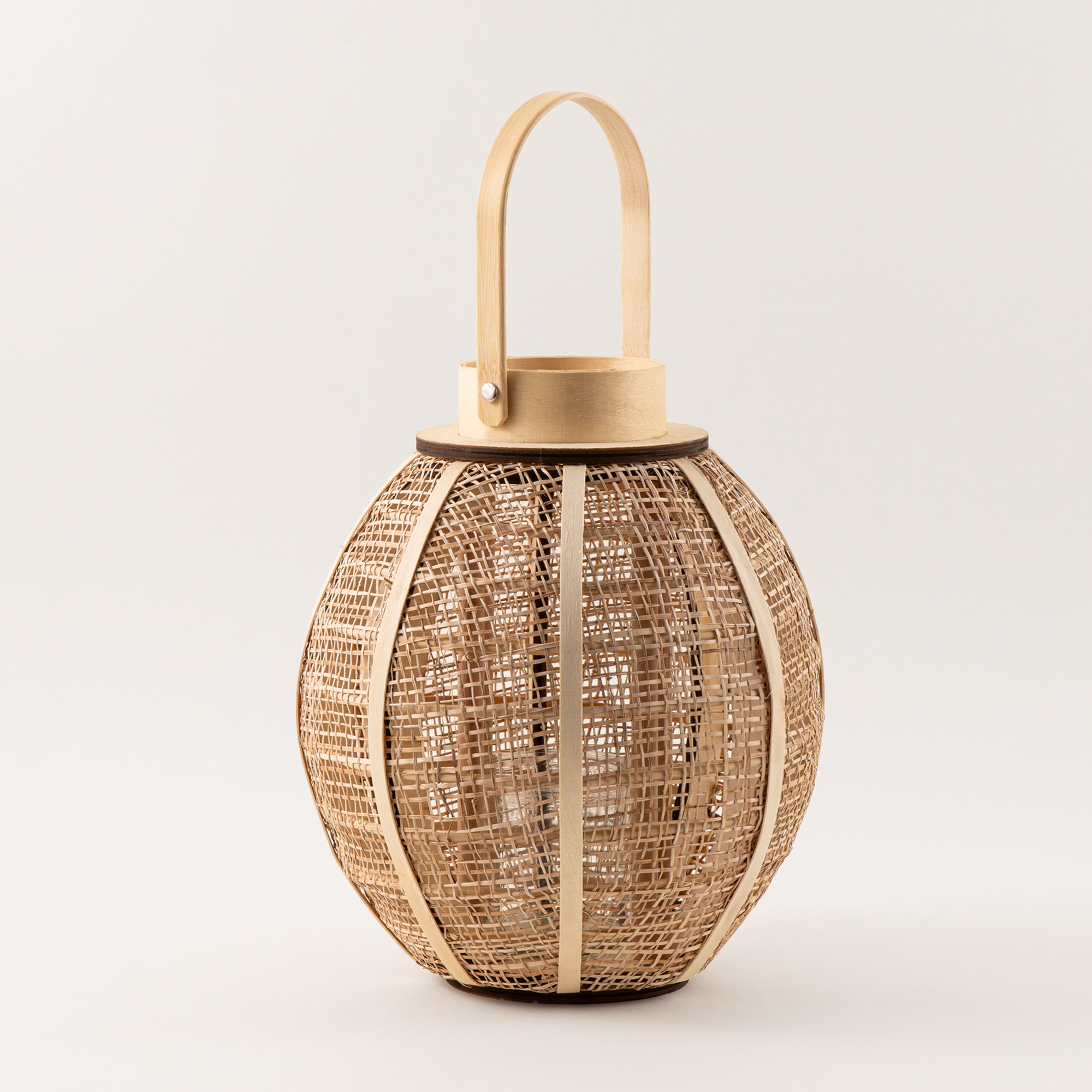 هومز فانوس نوير مصنوع من الخيزران الطبيعي عالي الجودة بتصميم أنيق يضيف لمسة دافئة وراقية لأي مساحة داخلية أو خارجية. يأتي بمقاس 24*24*27سم ولون بيج هادئ يناسب مختلف أنماط الديكور، ومثالي لتزيين الطاولات والمداخل والشرفات.