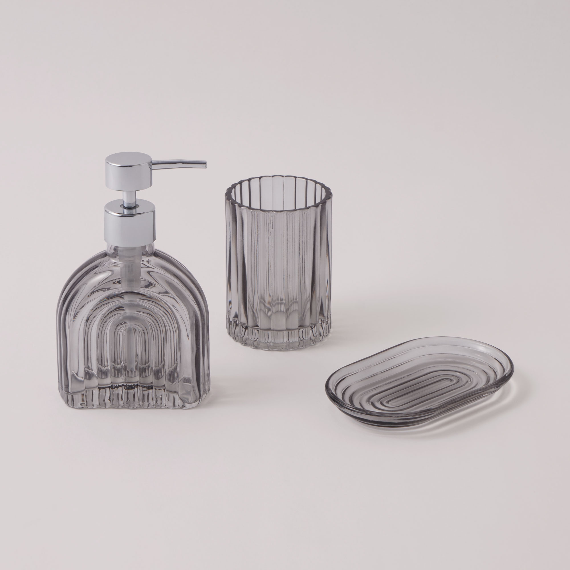 هومز طقم حمام 3 قطع زجاج رمادي بتصميم هندسي