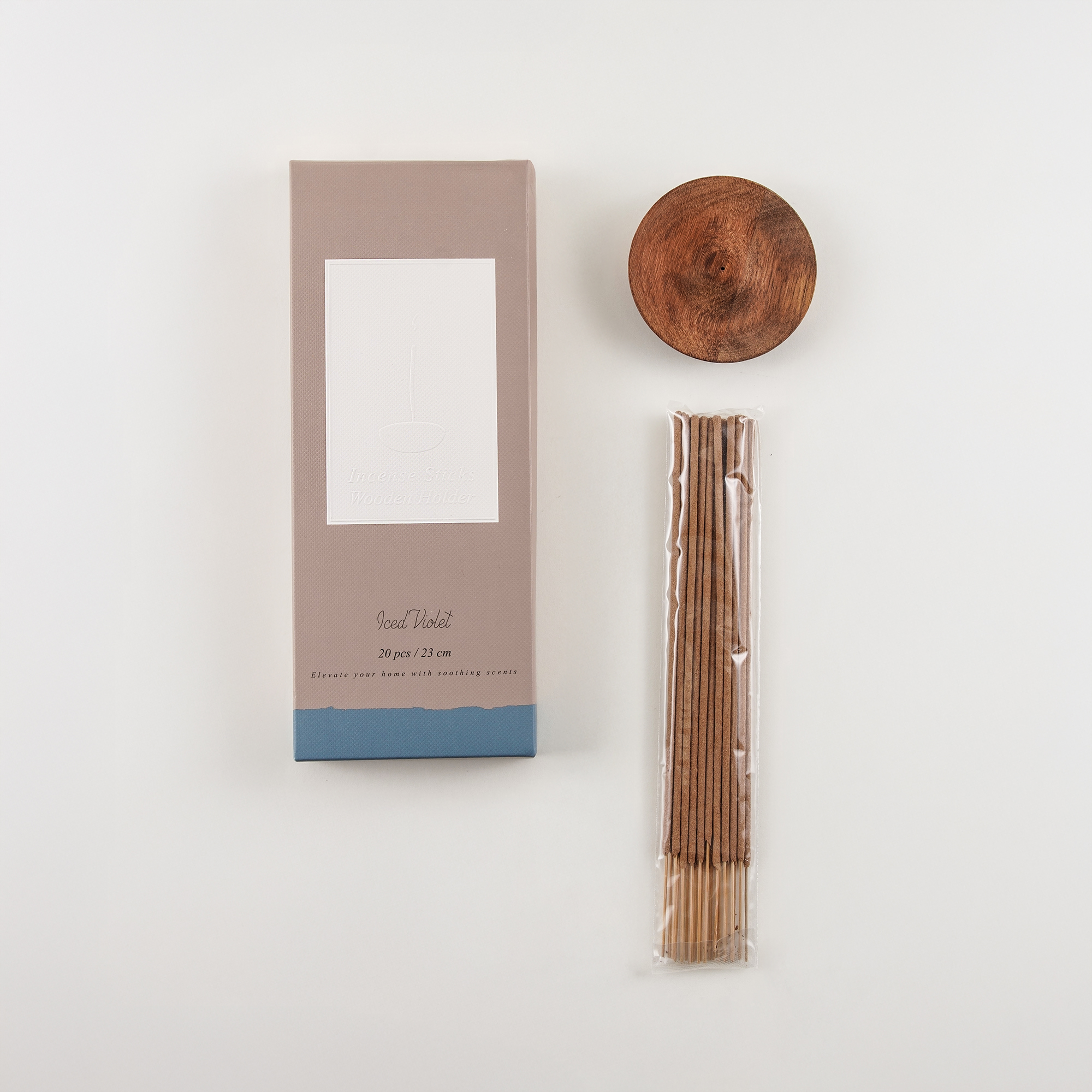 هومز طقم أعواد بخور 20 قطعة مع حامل خشب برائحة بنفسج مثلج