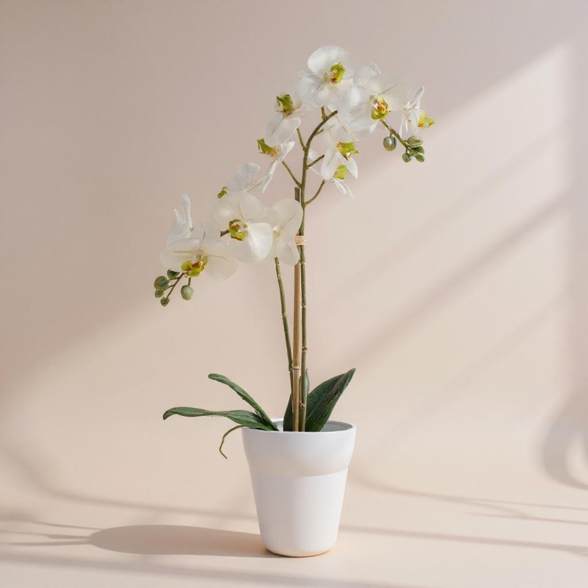 هومز نبات فالاينوبسيس صناعي في إناء للاستخدام داخل المنزل، أبيض، 65سم