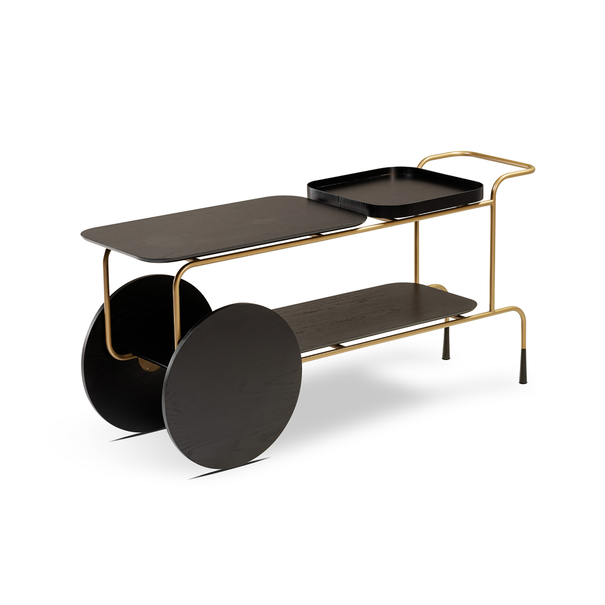 تمزج عربة لورينزو بين الفخامة والعملية بتصميم يجمع بين الأسطح السوداء الأنيقة والإطار المعدني الذهبي، مما يمنحها حضوراً راقياً يلفت الأنظار. ومع كونها مثالية لتقديم المشروبات أو عرض الديكور، تضيف هذه العربة لمسة من الرفاهية إلى المساحات العصرية. وتأتي بأبعاد 170*80*50 سم لتكون قطعة بارزة تعكس أناقة خالدة وتضفي طابعاً فاخراً على أي مساحة داخلية.