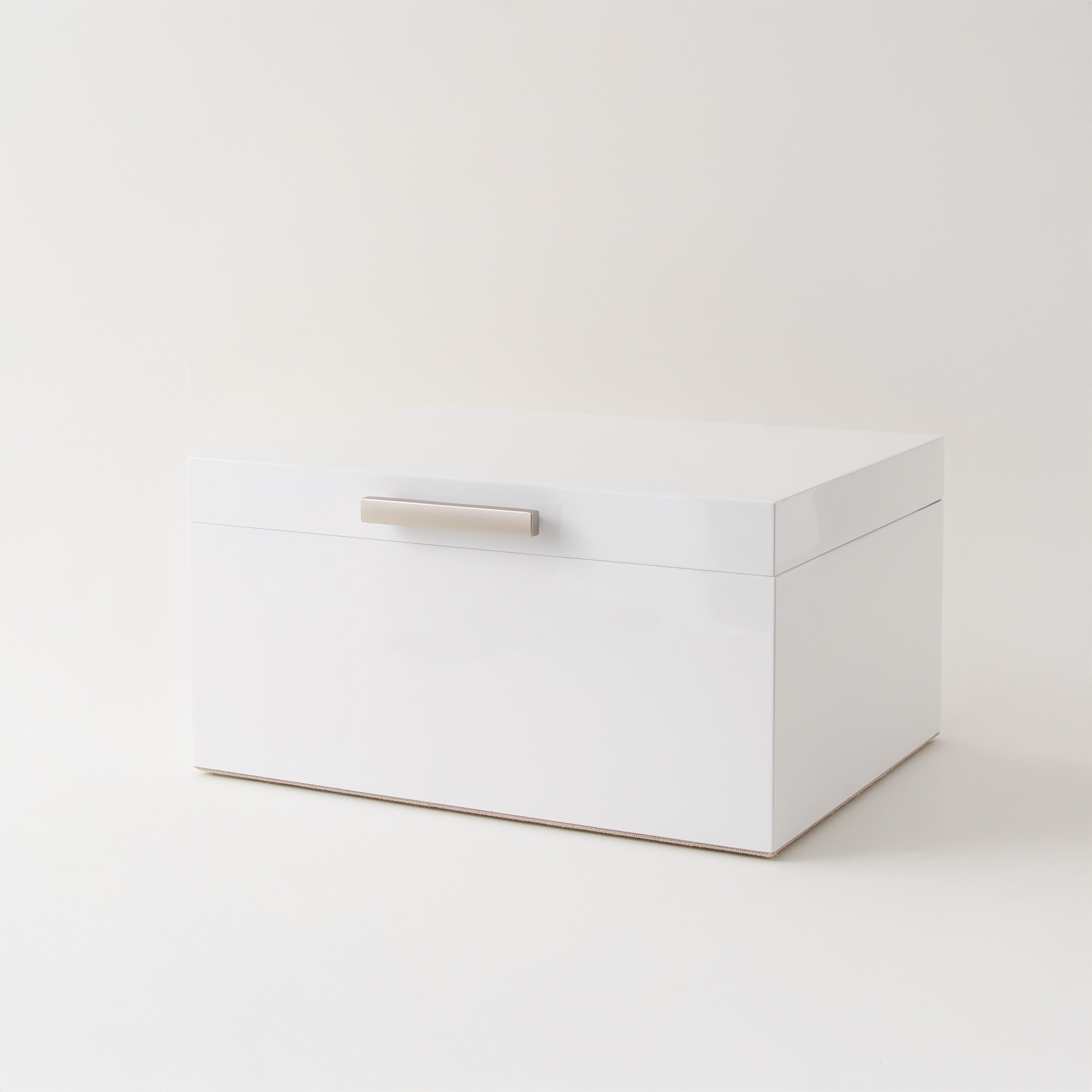 "صندوق مجوهرات وسط من هومز بلون أبيض وطبقتين للتخزين، يجمع بين الأناقة والعملية لتنظيم الإكسسوارات بسهولة. مصنوع من خشب MDF بلمسة لاكيه ولمسات داخلية من قماش اللينن لحماية المجوهرات ومنع خدشها، مع تصميم عصري بسيط. مقاسه 26*19*13سم، مناسب للطاولات أو كهدية أنيقة.