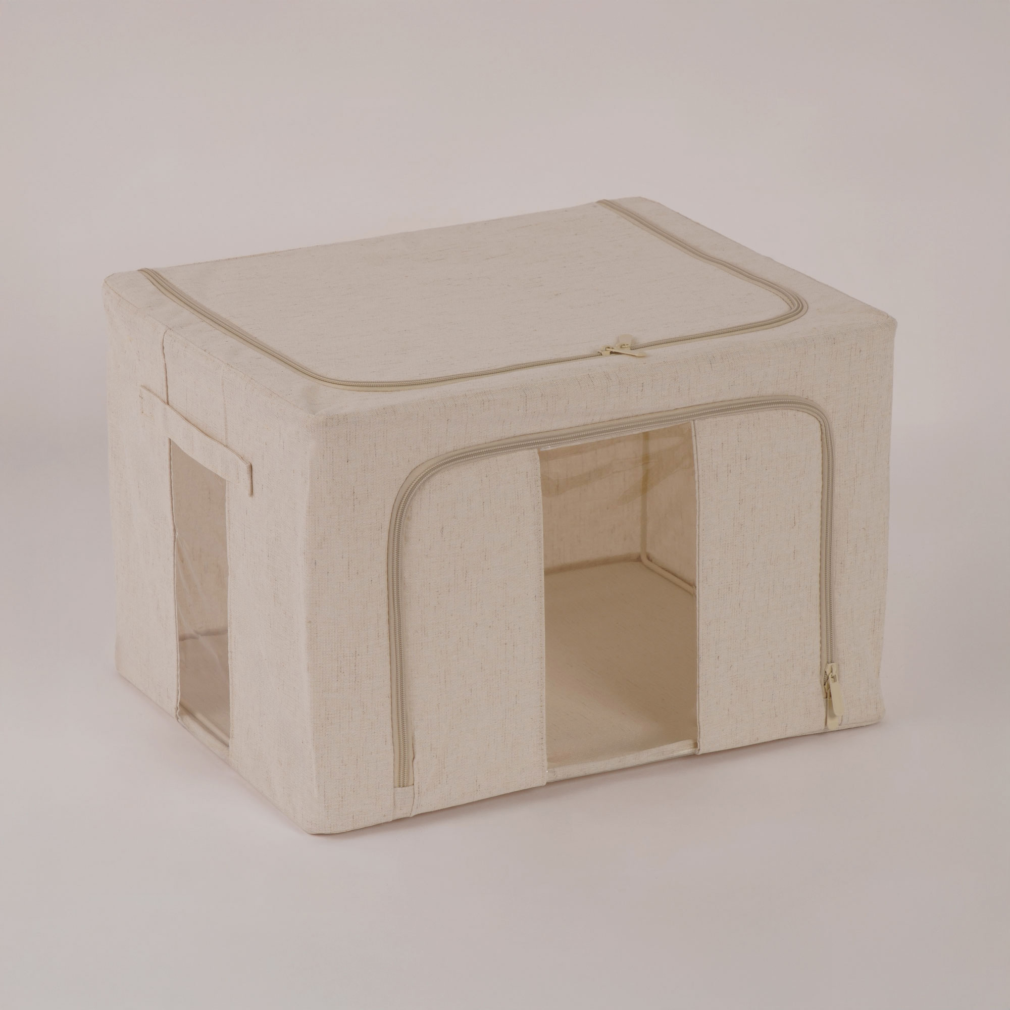 منظم ملابس متوسط الحجم باللون بيج، يوفر مساحة كبيرة للبطانيات والملابس الثقيلة والمفارش الموسمية. السحاب القوي يحمي المحتويات من الغبار ويسهل عملية الفتح والإغلاق. يتميز بخامة خفيفة وسهلة النقل مع مساحة داخلية واسعة، مما يجعله مناسباً للاستخدام داخل الخزانة أو أسفل السرير للحفاظ على ترتيب المنزل.