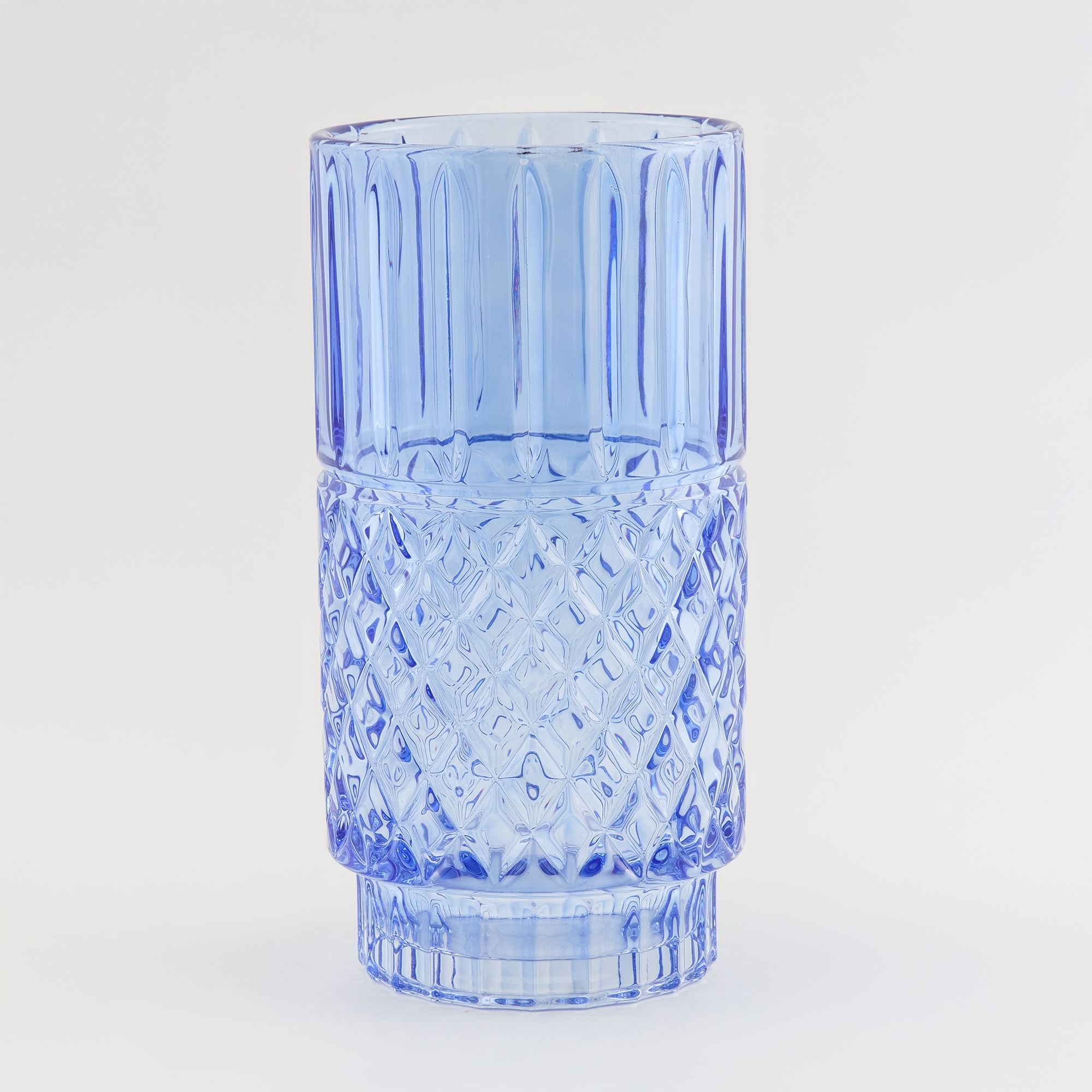 هومز فازة زجاج كحلي بنقشة ماسية 14*14*27.6 سم