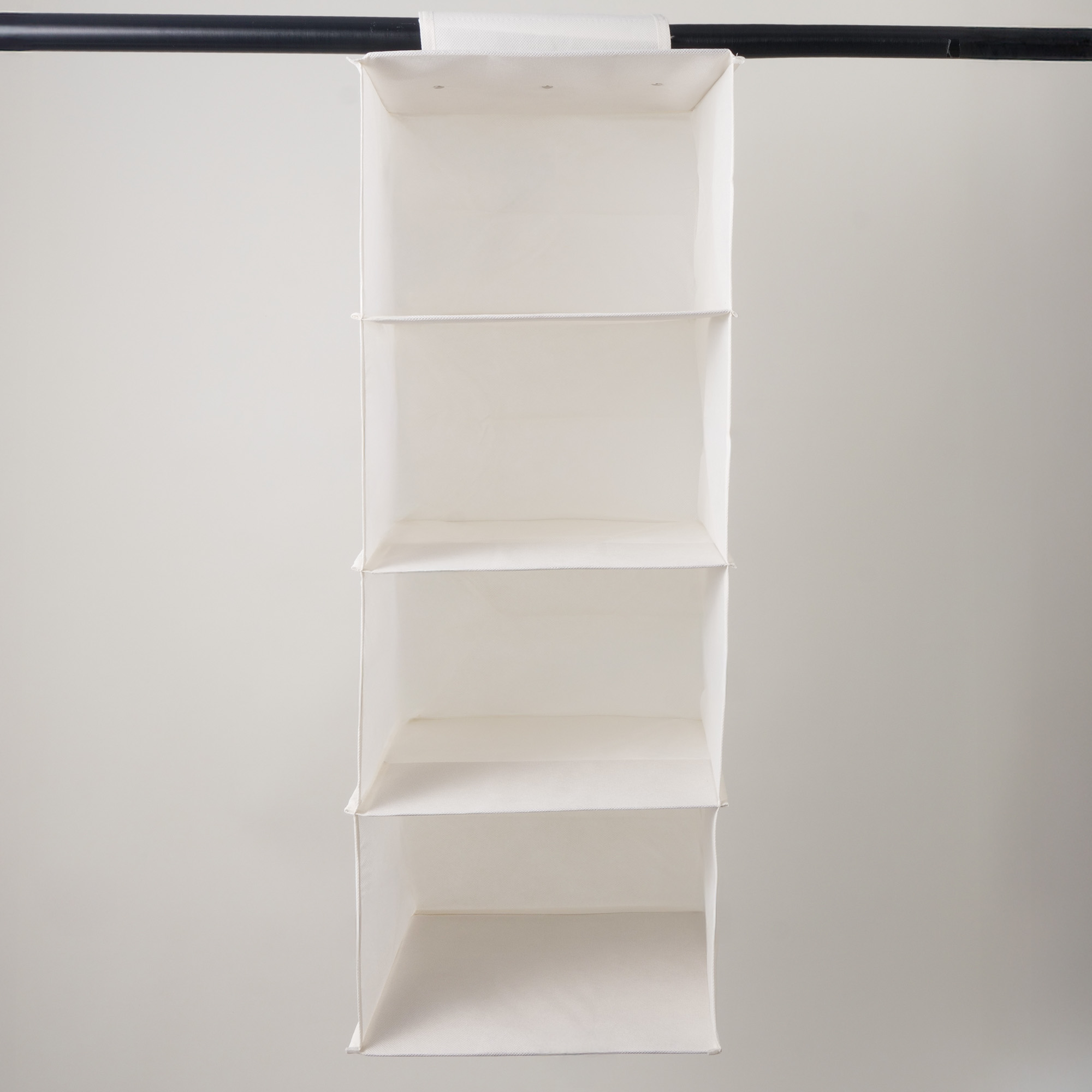 منظم خزانة معلق بـ 4 طبقات باللون البيج. مثالي لترتيب الملابس أو الحقائب والإكسسوارات. مصنوع من البوليستر المتين. المقاس: 62*32*26 سم. يوفر مساحة ويسهل الوصول للمحتويات.