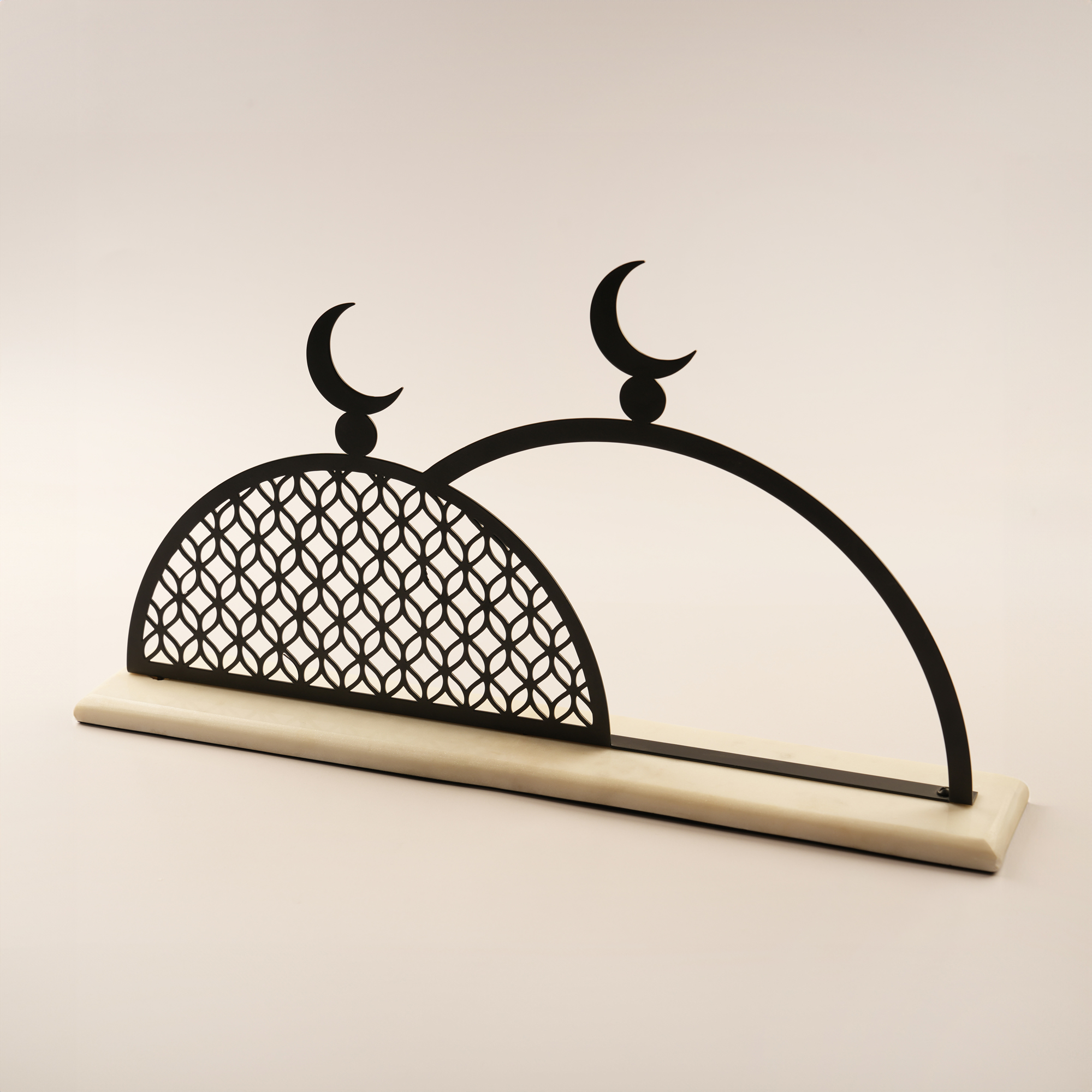 أعكس دفء رمضان بحس عصري مع تحفة القباب الزخرفية من هومز. تتميز بقبابين أسودتين أنيقتين، إحداهما بتصميم شبكي زخرفي، وكلتاهما مزينتان بأهلة في الأعلى، وتستند التحفة على قاعدة بيضاء أنيقة. بأبعاد 27*9*50سم، تعد الخيار الأمثل لديكور مميز.
