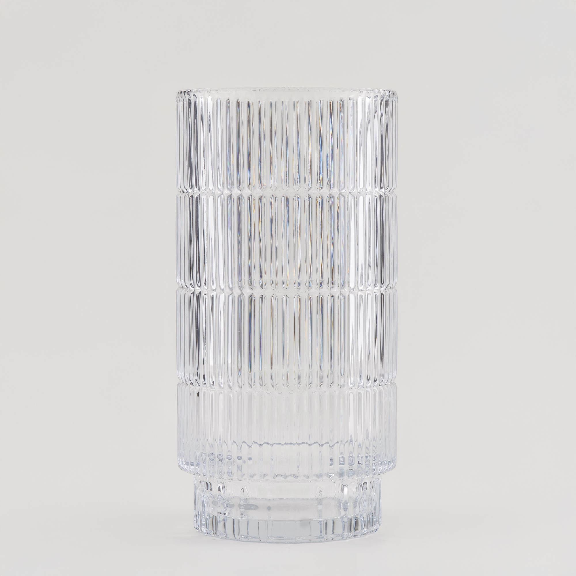 امنحي مساحتك لمسة ديكورية راقية مع فازة هومز الزجاجية بتصميمها المضلّع الأنيق. مصنوعة من زجاج متين بلمسة فضية عاكسة تضيف بريقًا ناعمًا إلى الطاولات أو الزوايا الجانبية. مثالية لتنسيق الزهور أو استخدامها كقطعة تزيين مستقلة تعزّز جمالية المكان.