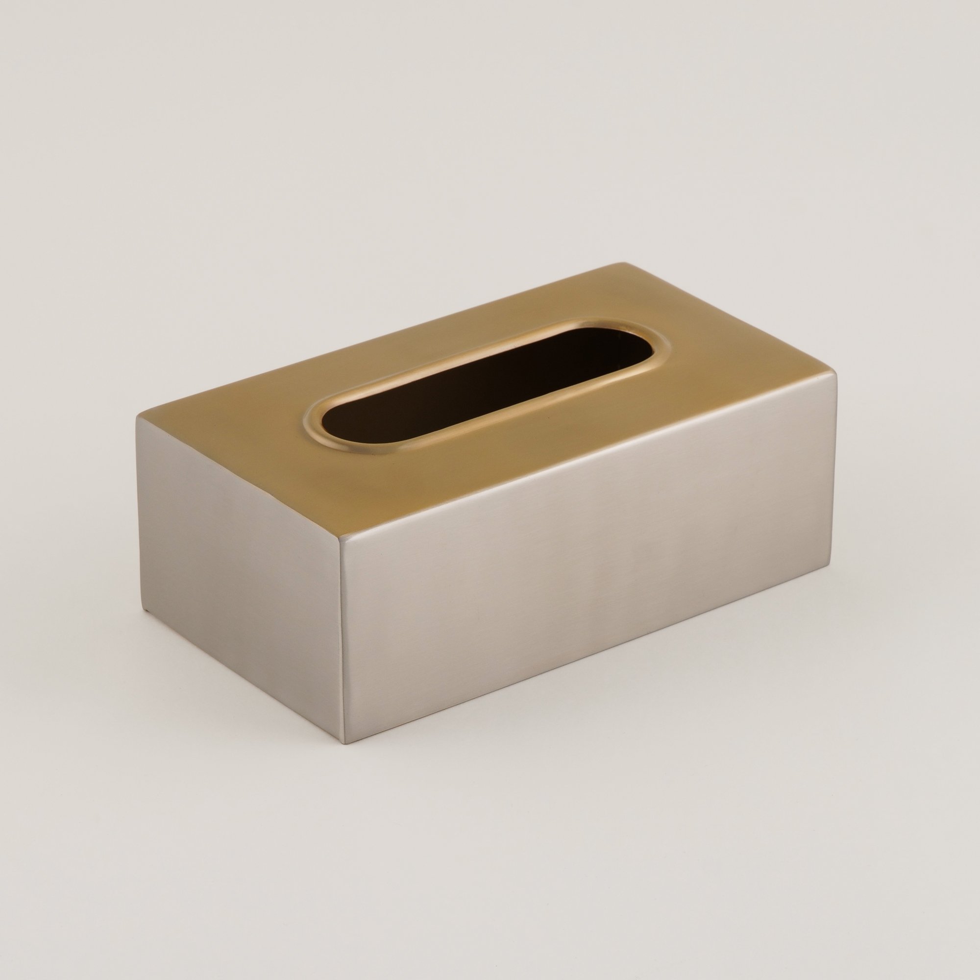 علبة مناديل مصنوعة من الستانلس ستيل مناسبة لأسطح الحمام أو طاولة الزينة. بمقاس 22 سم تتوافق مع علب المناديل المستطيلة القياسية.التشطيب الذهبي الفاتح يضيف لمسة أنيقة، والخامة المعدنية توفر ثباتًا ومتانة للاستخدام اليومي.