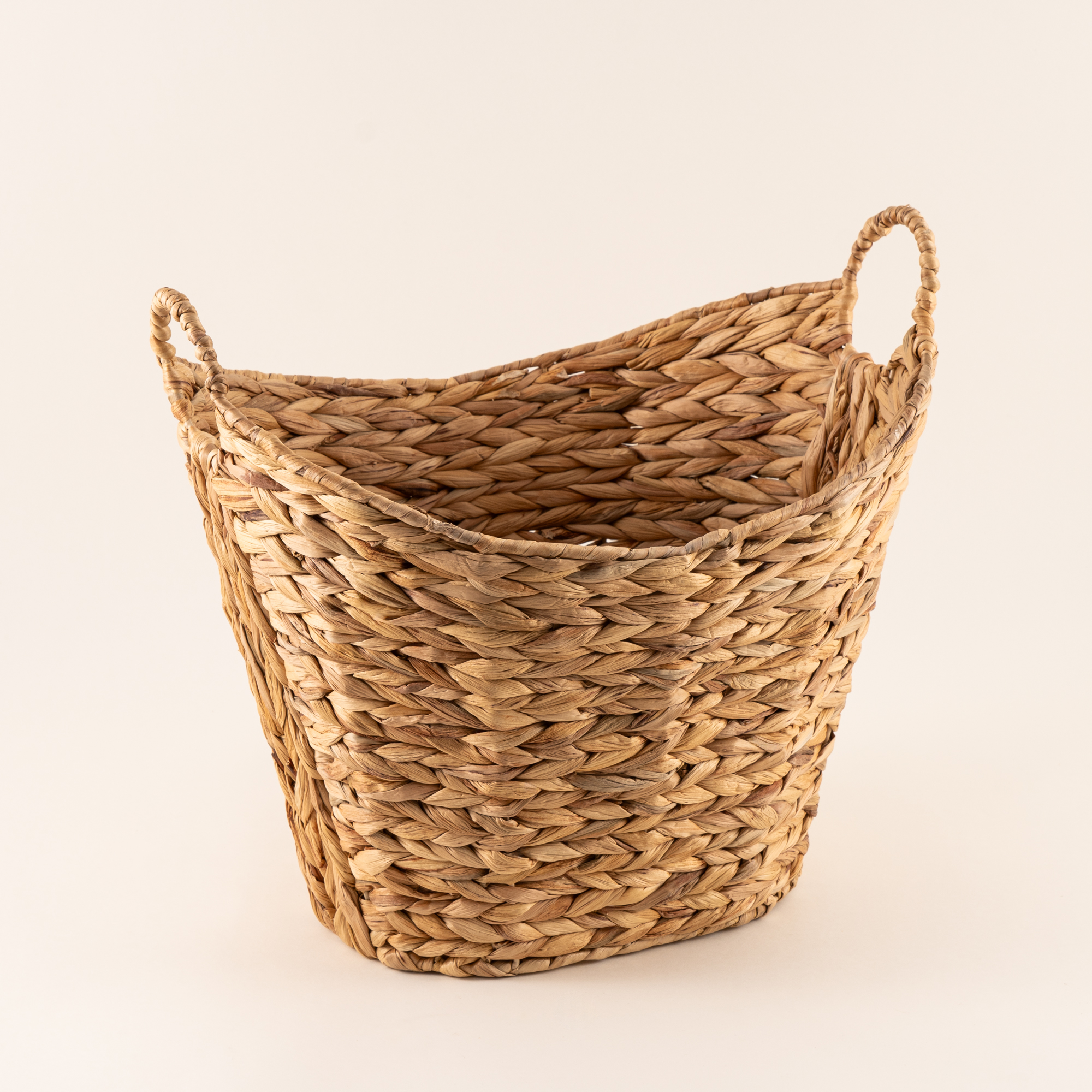 هومز سلة تخزين مصنوعة من نبات ورد النيل بتصميم مجدول يشبه الراتان ولون طبيعي، مناسبة للتخزين الواسع مع لمسة ديكور طبيعية ودافئة للمساحات المختلفة. المقاس: 46*37*37 سم.