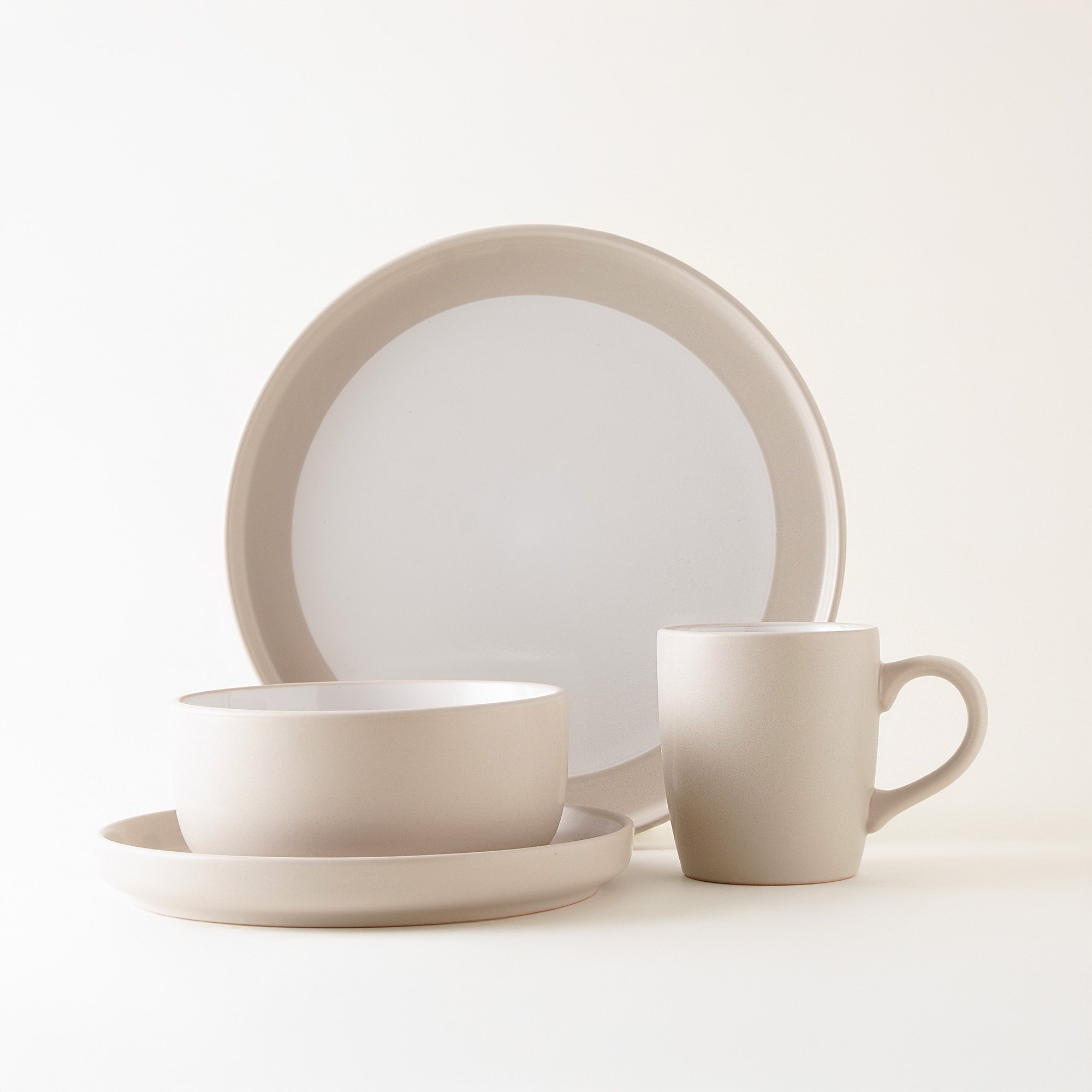 طقم سفرة أنيق من لا ميسا مكوّن من 16 قطعة يشمل 4 صحون عشاء مقاس 10.5 إنش، و4 صحون حلوى مقاس 8 إنش، و4 أوعية حبوب مقاس 6 إنش، و4 أكواب بسعة 12 أونصة. يتميز بلون بيج هادئ يناسب الاستخدام اليومي وتنسيق الطاولات البسيطة.