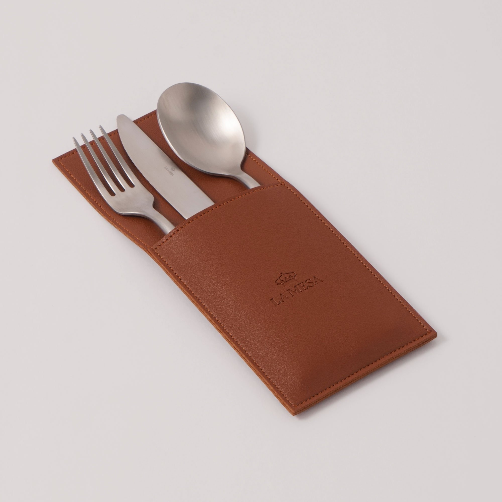 لا ميسا 4 قطع حافظة أدوات طعام جلد صناعي، بني 4.5*4.5سم