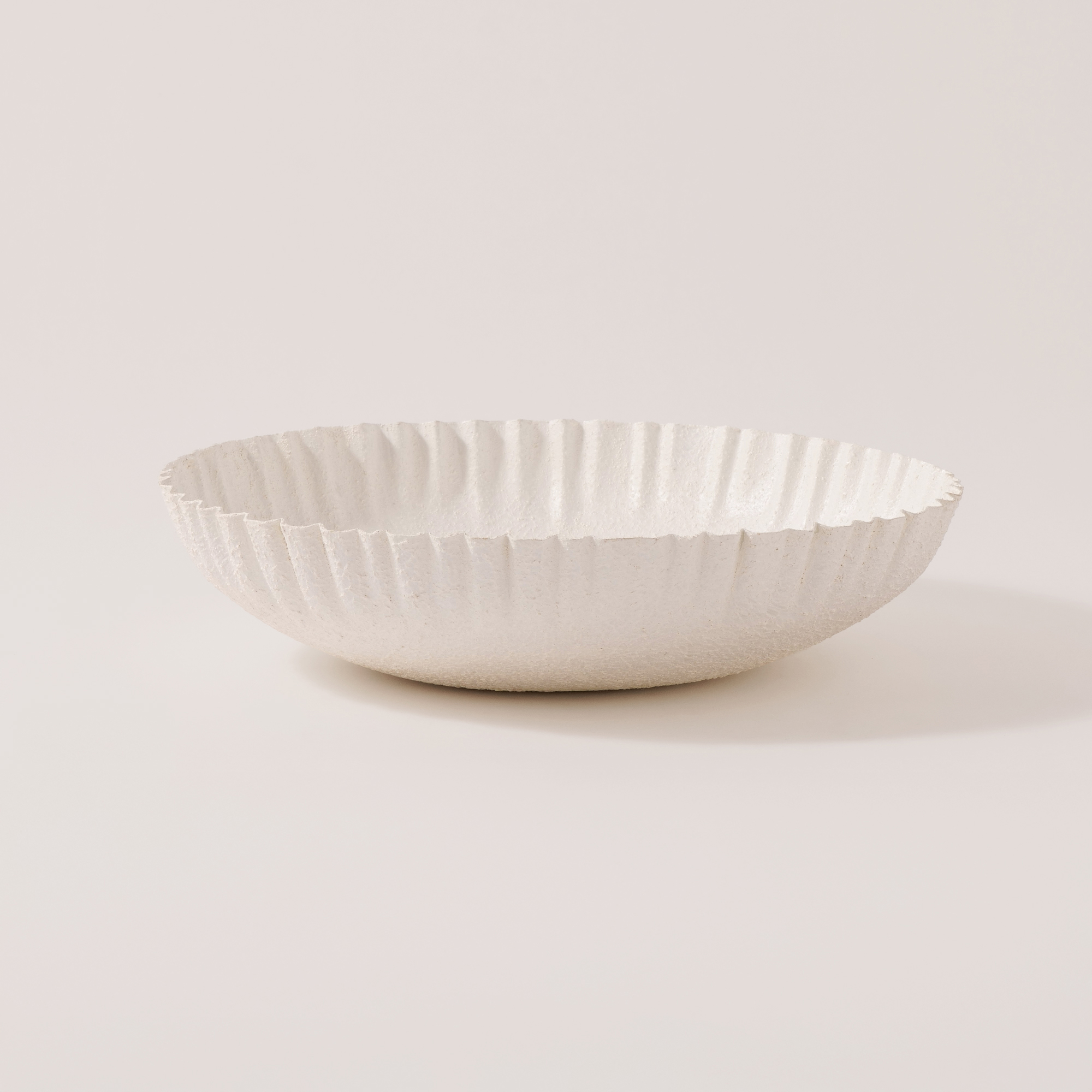 صحن تقديم من لا ميسا بتصميم عصري يمنح الطاولة مظهراً أنيقاً ومتوازن. اللون الأبيض مع اللمسات المحفورة يضيف عمقاً بصرياً رائعاً، مما يجعله خياراً مثالياً لتقديم الفواكه أو استخدامه كقطعة ديكور.
