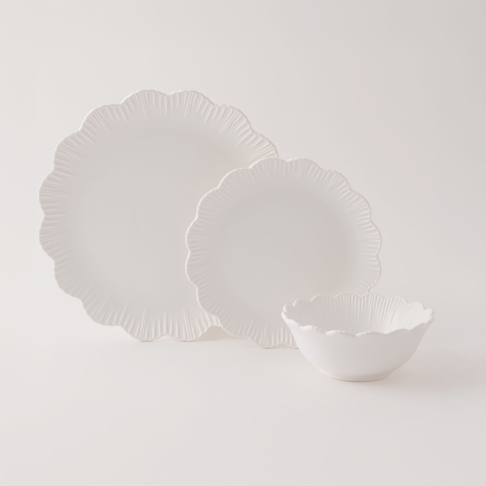 لا ميسا طقم عشاء فخار 18 قطعة بتصميم زهري، أبيض