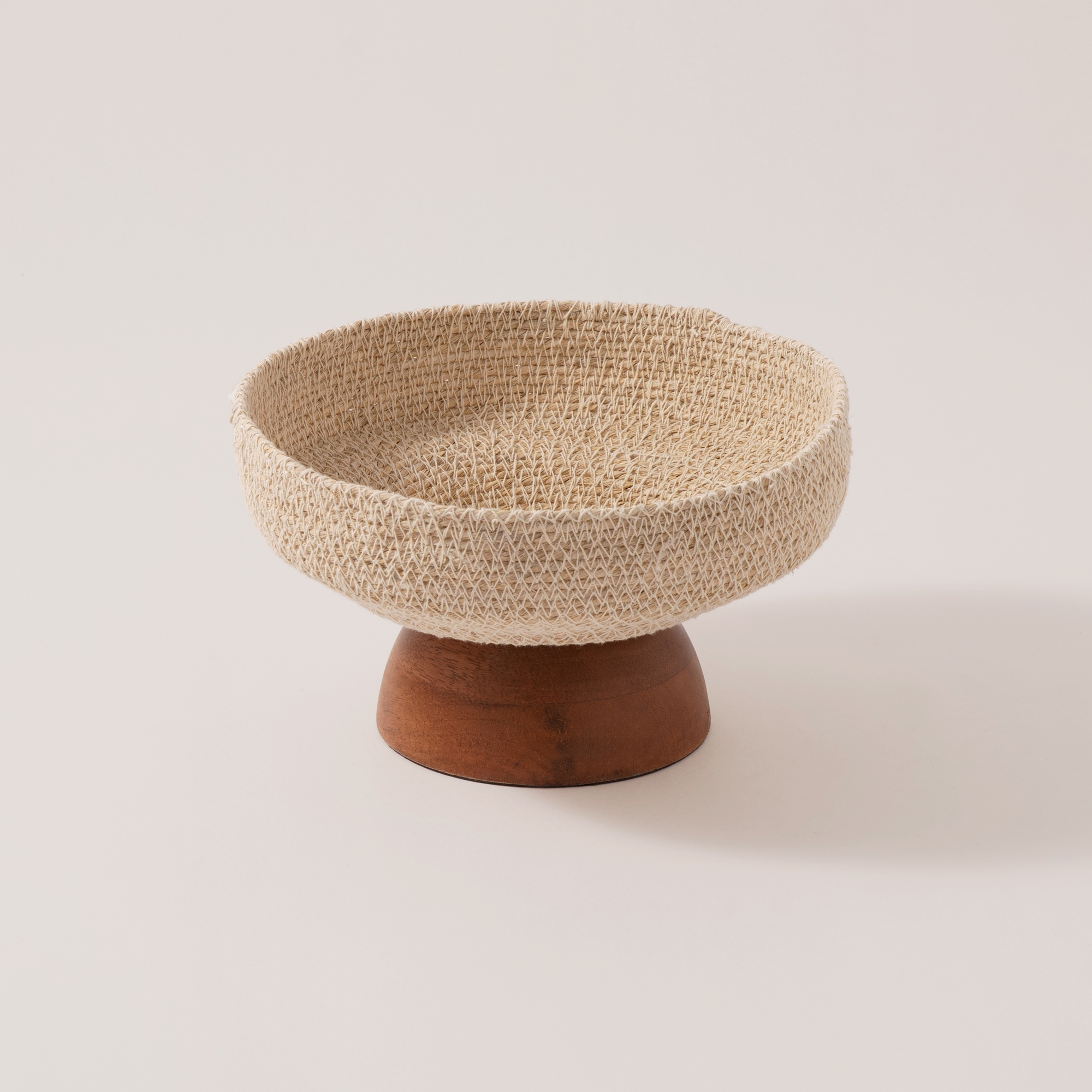 "لا ميسا تقدم وعاء تقديم بلون بيج طبيعي مصنوع من مزيج الاعشاب البحرية والخشب ليمنح شكلاً دافئًا وطبيعيًا. يأتي بمقاس 20*20*12سم، ومثالي لتقديم الوجبات الخفيفة أو الفاكهة أو للاستخدام كقطعة ديكور. خامته اليدوية تضيف لمسة ريفية تناسب أي طاولة طعام بسيطة.
