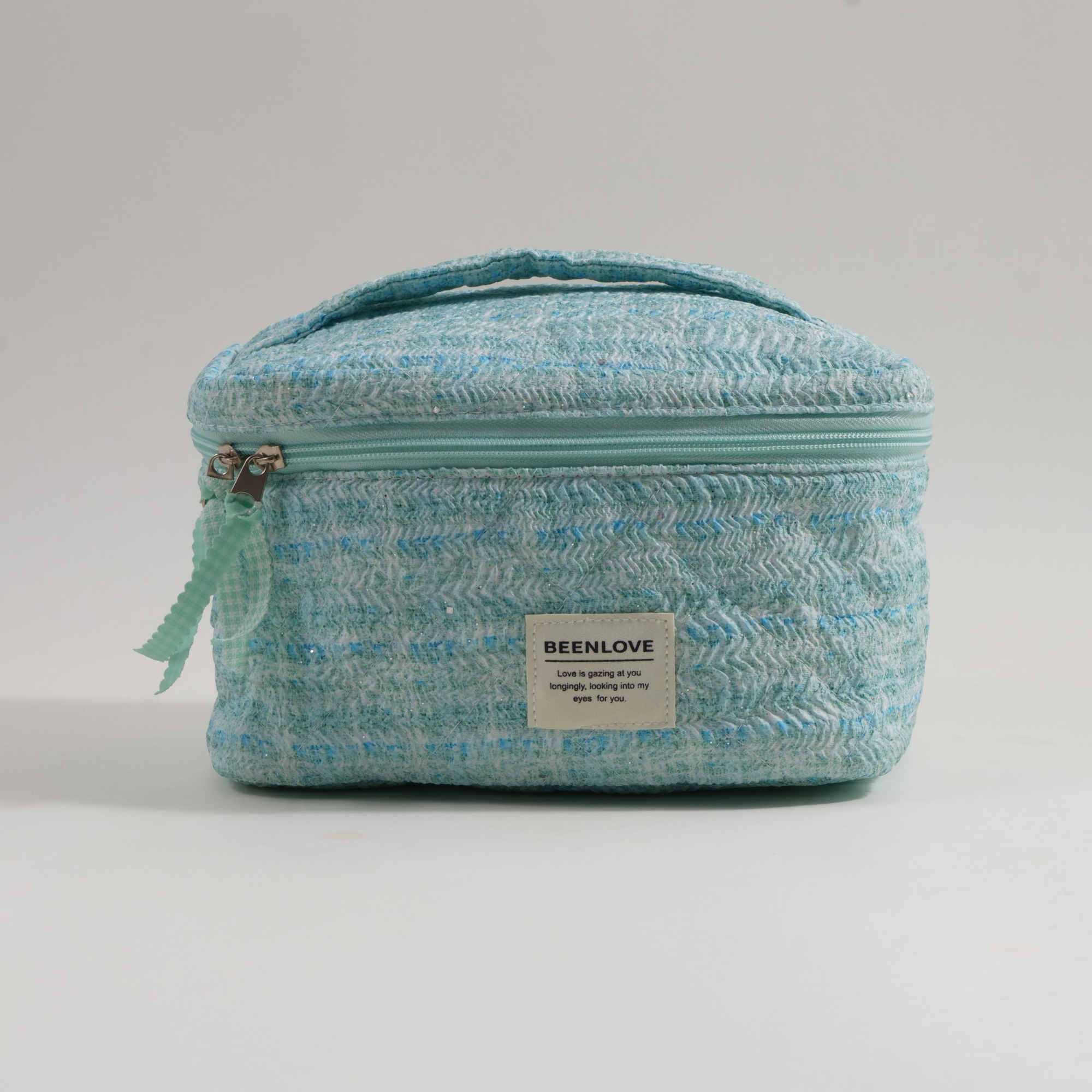 حقيبة مكياج مستطيلة بغطاء وسحاب للإغلاق 23.5*16*15سم. خامة بوليستر ممزوج بالقطن المركب. باللون الأخضر وتوفر مساحة مناسبة لحفظ مستحضرات التجميل أو منتجات العناية أو الأغراض الشخصية الصغيرة. مناسبة للاستخدام في المنزل أو أثناء السفر. تصميمها المتماسك يساعد على تنظيم المحتويات.