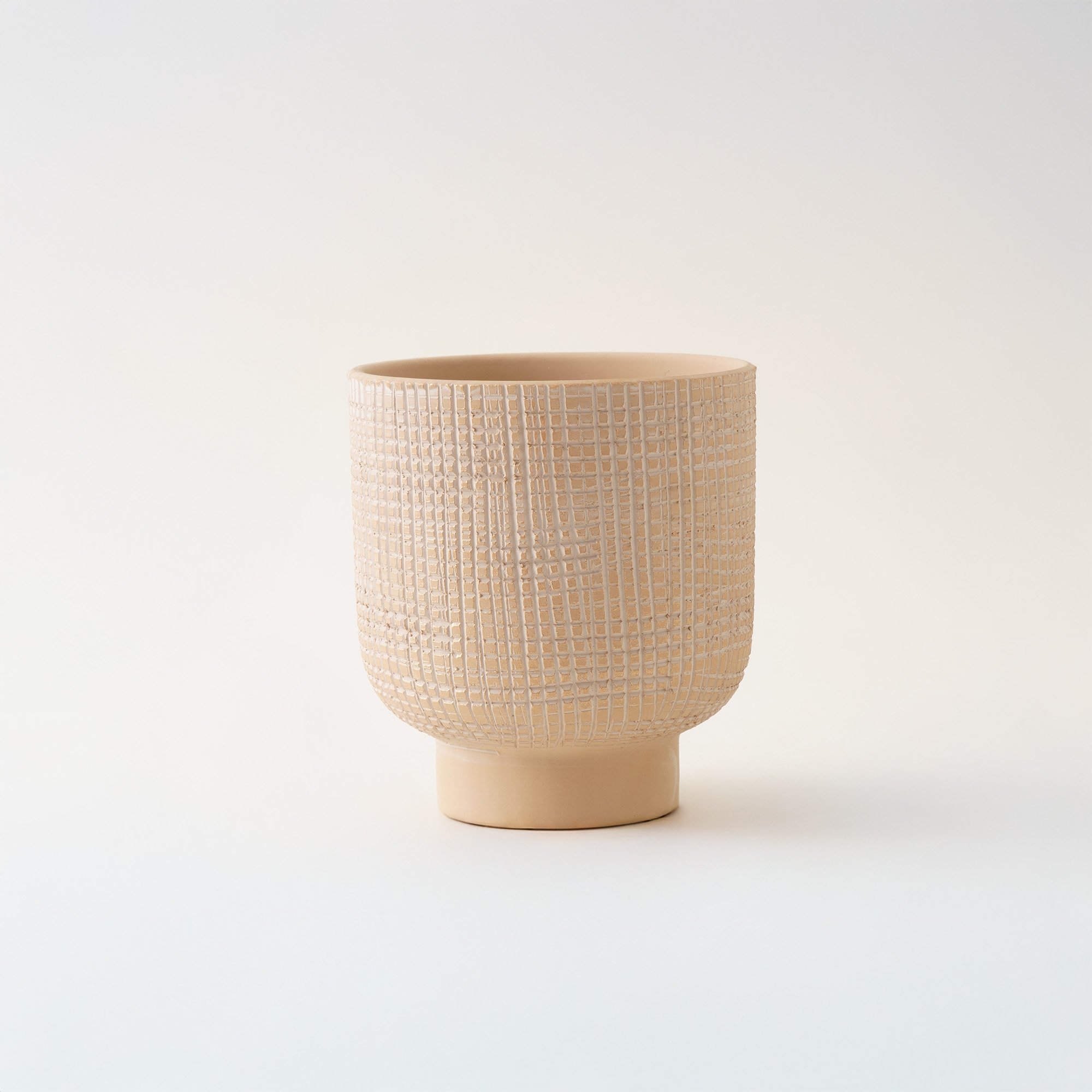 "هومز إناء توين الخزفي باللون البيج الناعم، بتصميم عصري منحوت يضيف لمسة فنية لأي مساحة. يأتي بمقاس 12*12*13.5سم، ويصلح كقطعة ديكور أنيقة أو فازة مميز للزهور.