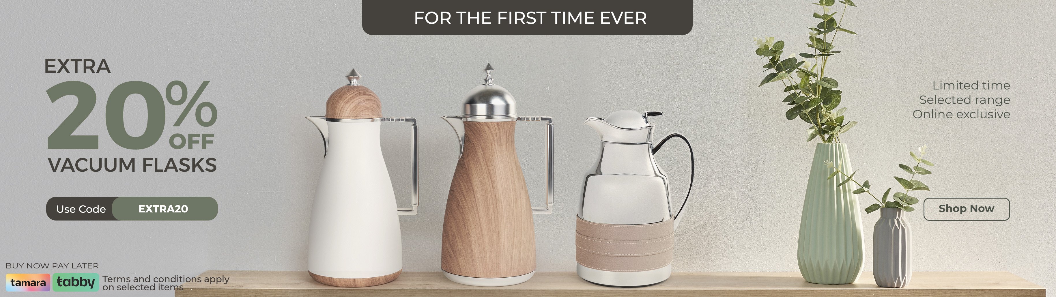 Dallaty jambiyah set of 2 gold & silver steel vacuum flask