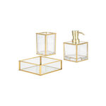 Introducing the ultimate addition to your bathroom decor the Homez glass & gold 3 pcs bath set containing a tumbler, soap dish and soap dispenser. Made with high quality, making it durable and water resistant ensuring that this set will withstand the test of time and remain a staple in your bathroom for years to come.