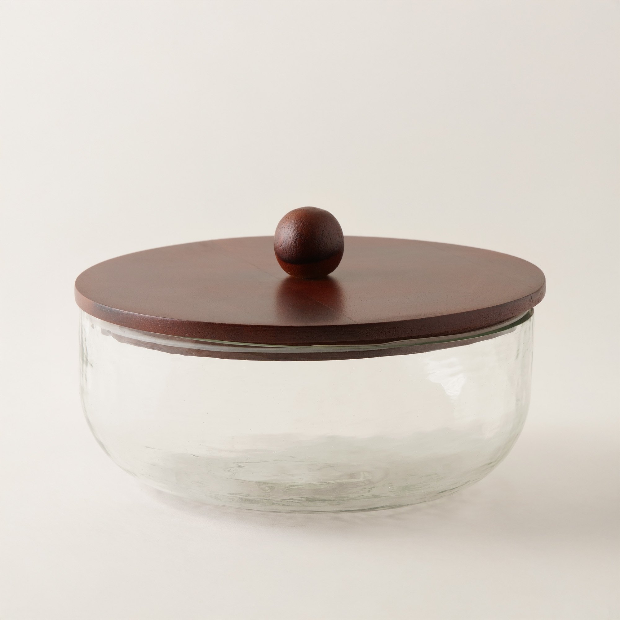 Alberto 1500ml clear hammered glass storage box with wooden lid