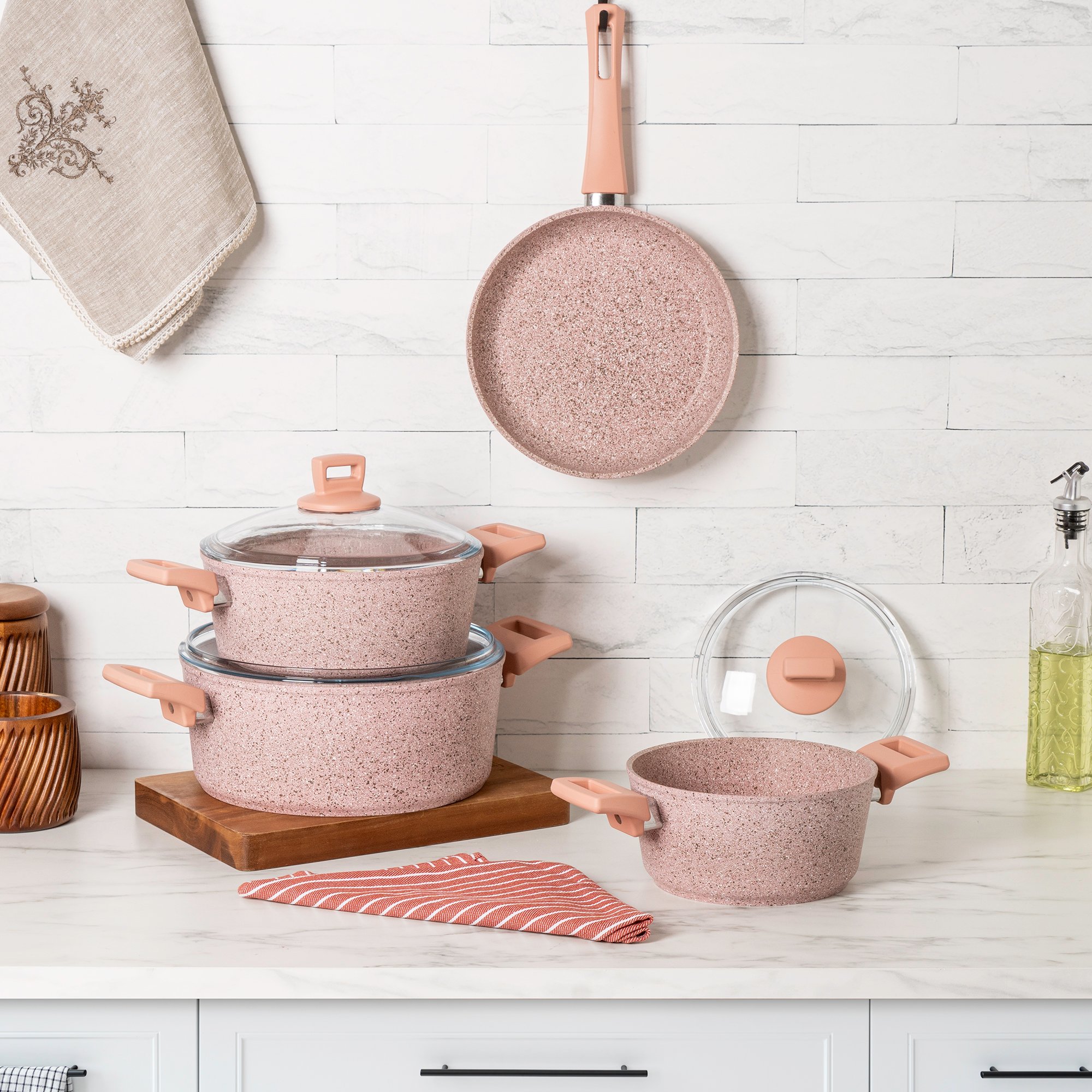 Alberto 7pcs granite cookware set pink