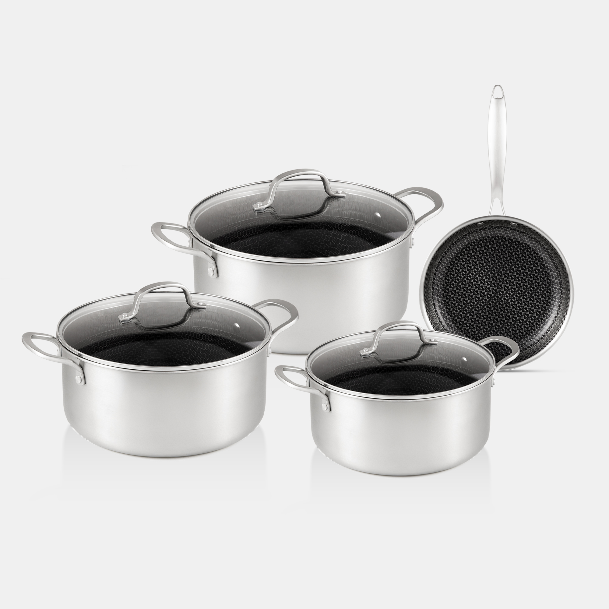 Set Includes 1 Fry Pan 1.5L, 1 Casserole With G-Type Lid 2.5L, 1 Casserole With G-Type Lid 4.8L, 1 Casserole With G-Type Lid 7L