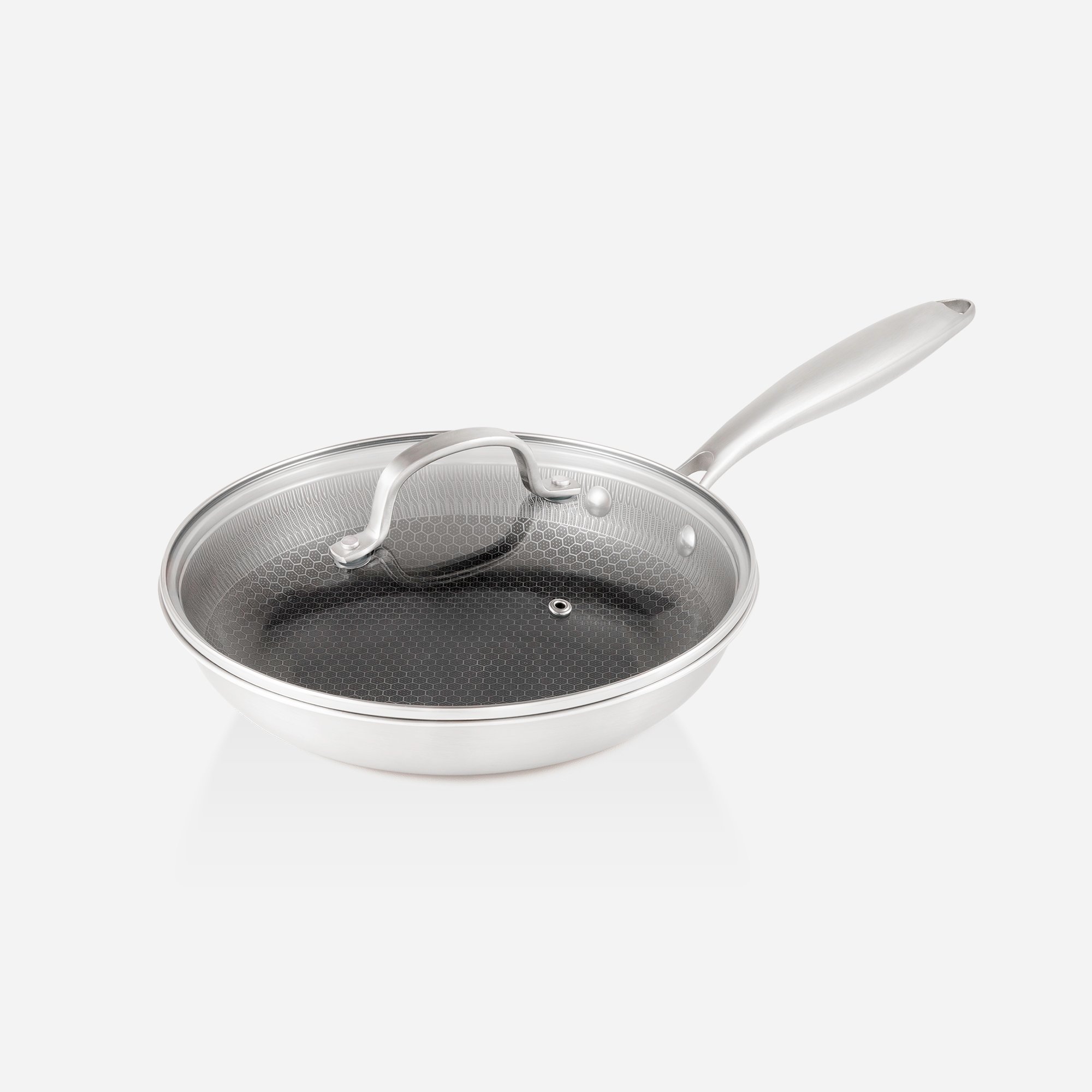 Alberto High Quality Stainless Steel Frypan With An Elegant Honeycomb Pattern, Perfect For All Cooking Needs And Daily Use. Size: 20*4.3 Cm, 1 L, 660 Gm. Comes With A Lid For Easy Cooking And To Preserve The Flavor Of Your Food.