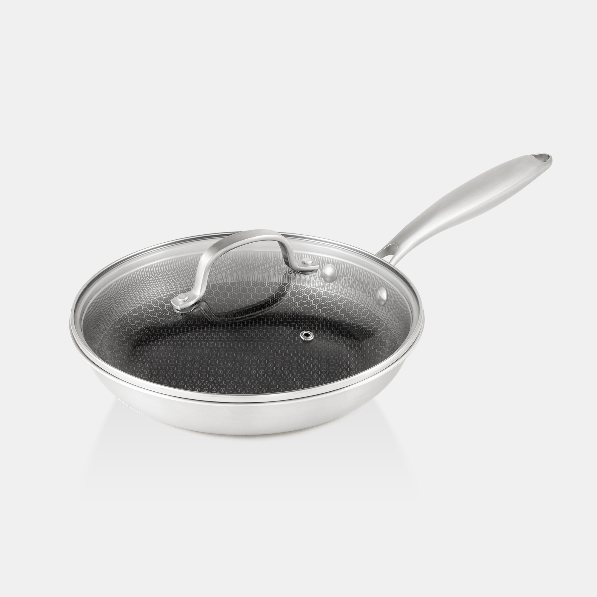 Alberto High Quality Stainless Steel Frypan With An Elegant Honeycomb Pattern, Perfect For All Cooking Needs And Daily Use. Size: 24*4.5 Cm, 1.5L, 830Gm. Comes With A Lid For Easy Cooking And To Preserve The Flavor Of Your Food.